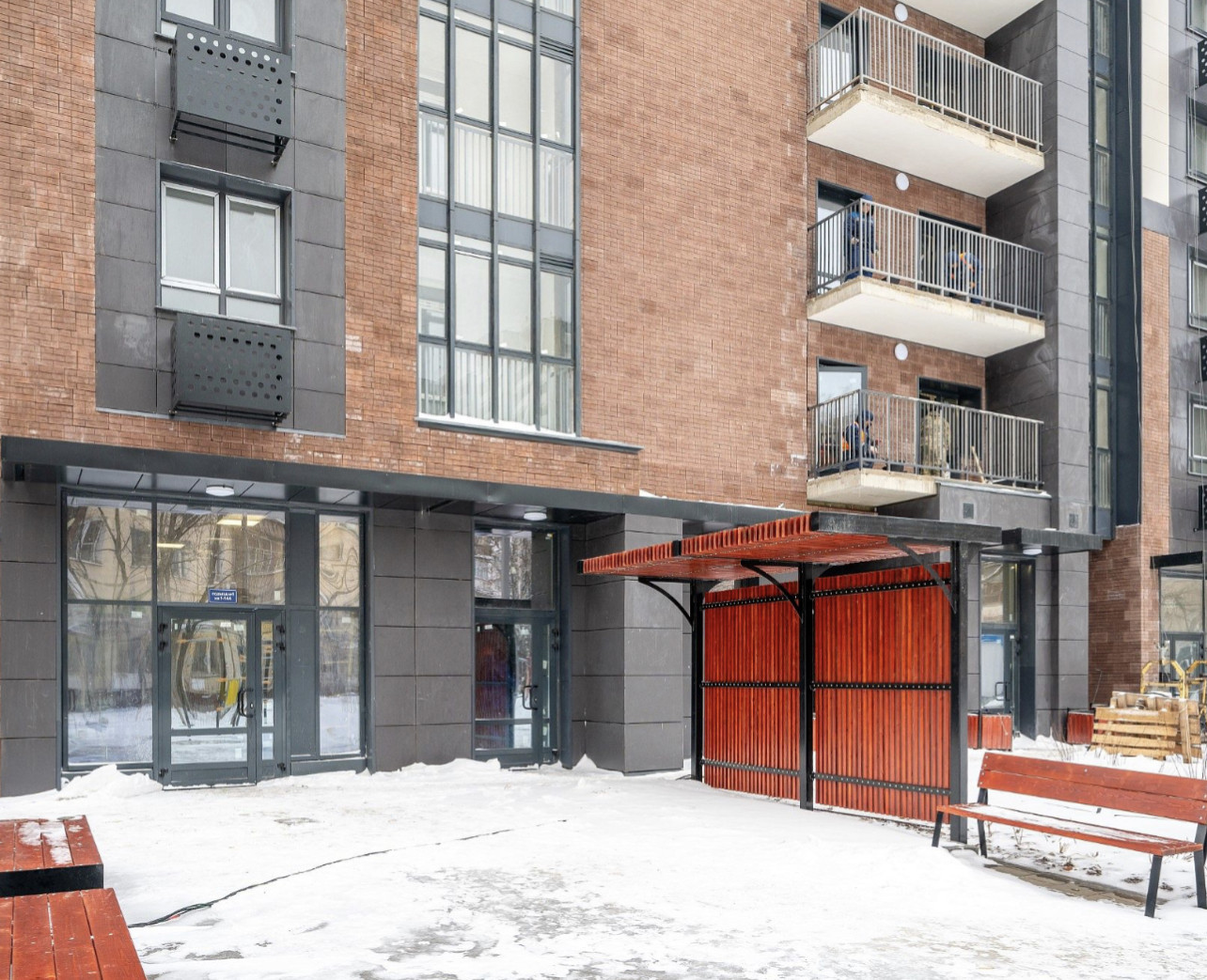 Современная безбаръерная входная группа, подземный паркинг, уютный двор.