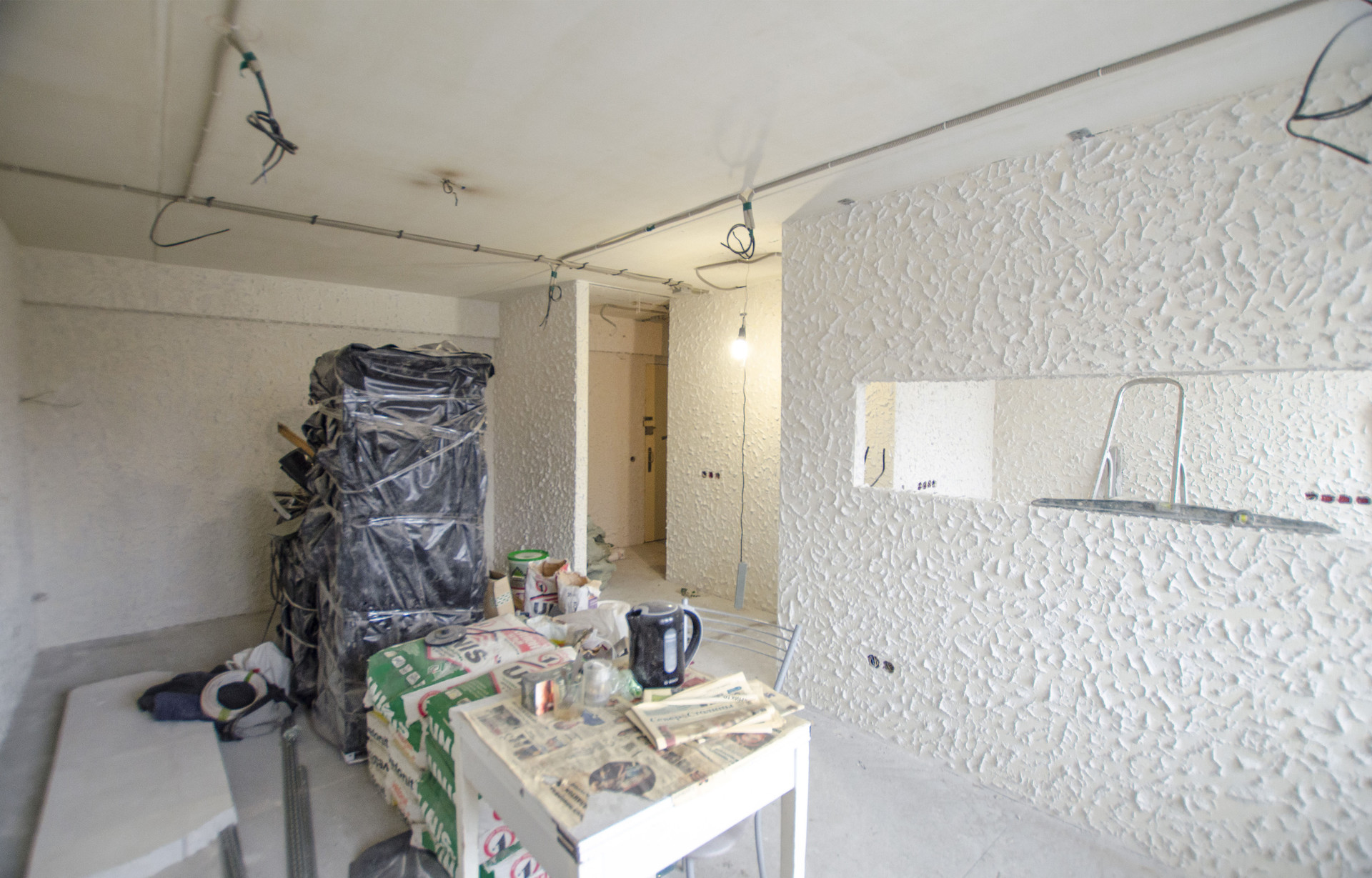 Ремонт типа White box. Медная электрика проведена. Ремонт делали под себя. На стенах декоративная шуба. Пол под стяжкой.