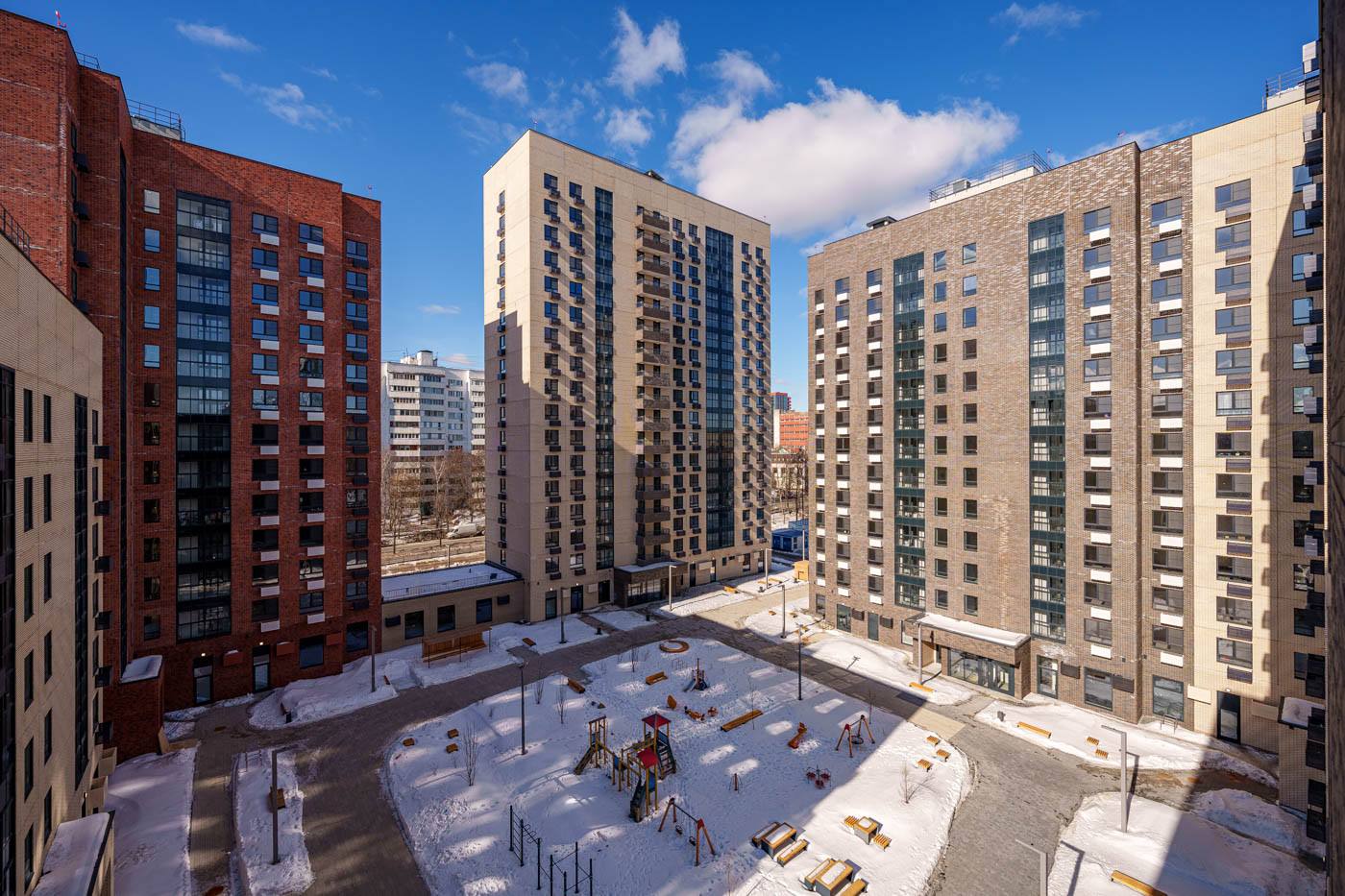 В шаговой доступности есть всё необходимое: Продуктовые магазины, детские сад, школа и прогулочные зоны.