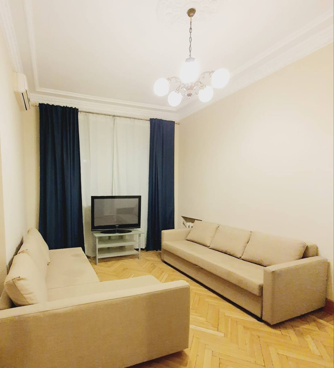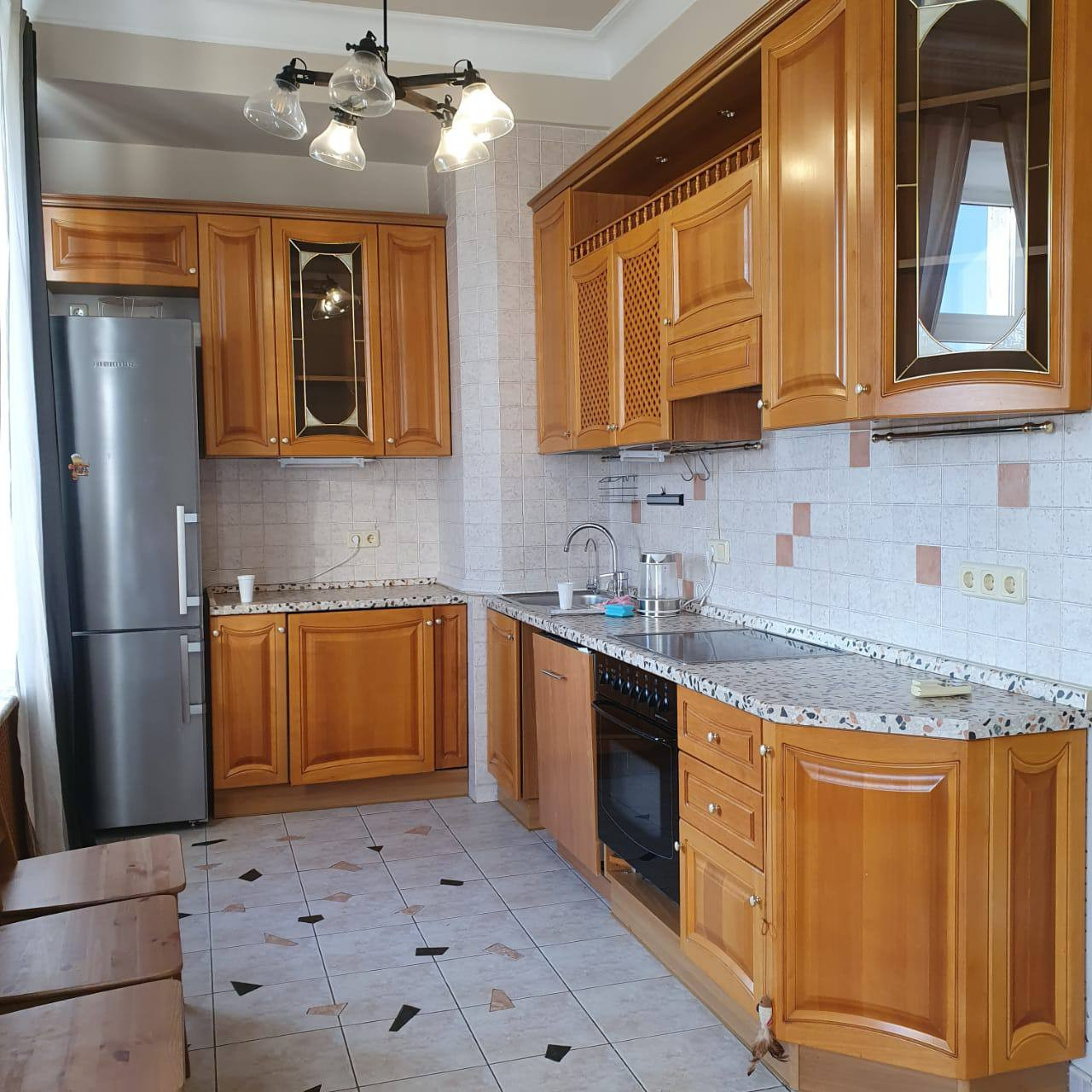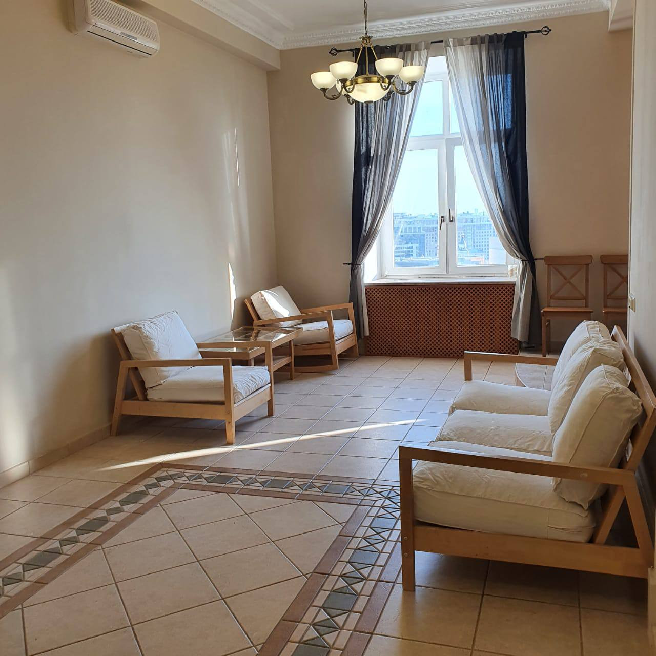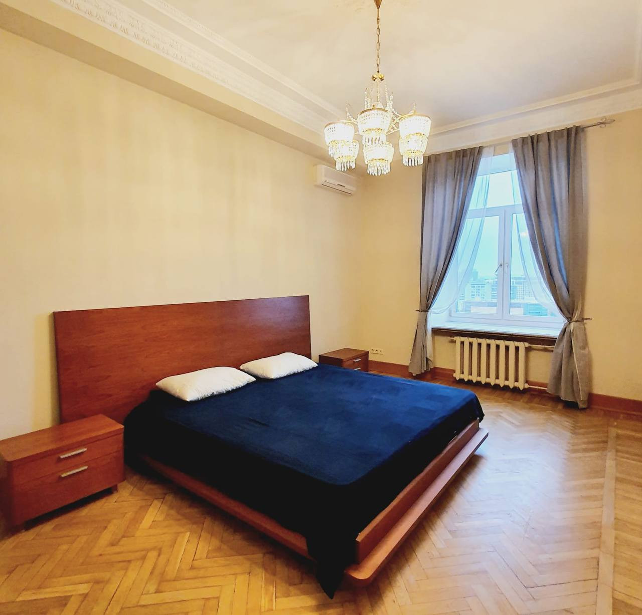 В квартире сделан косметический ремонт 3 года назад, общая площадь 97.1м., кухня-гостиная, 2 санузла, потолки 3.3м.