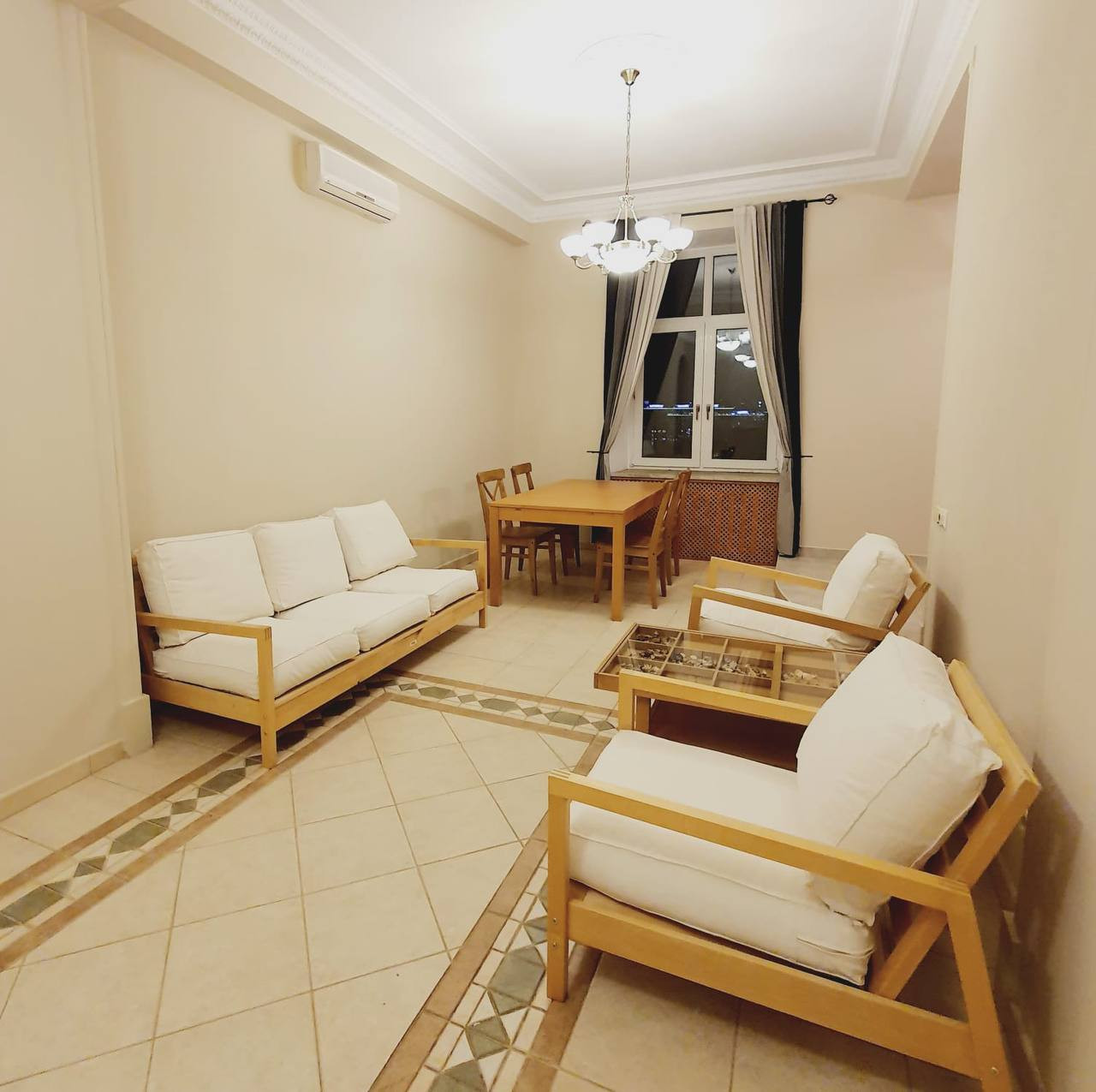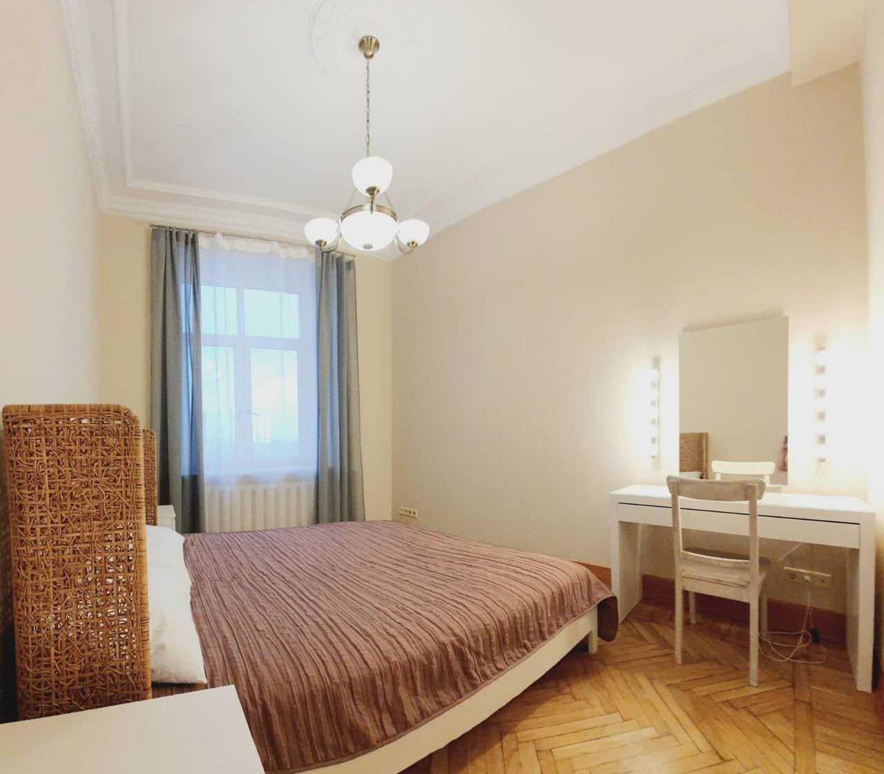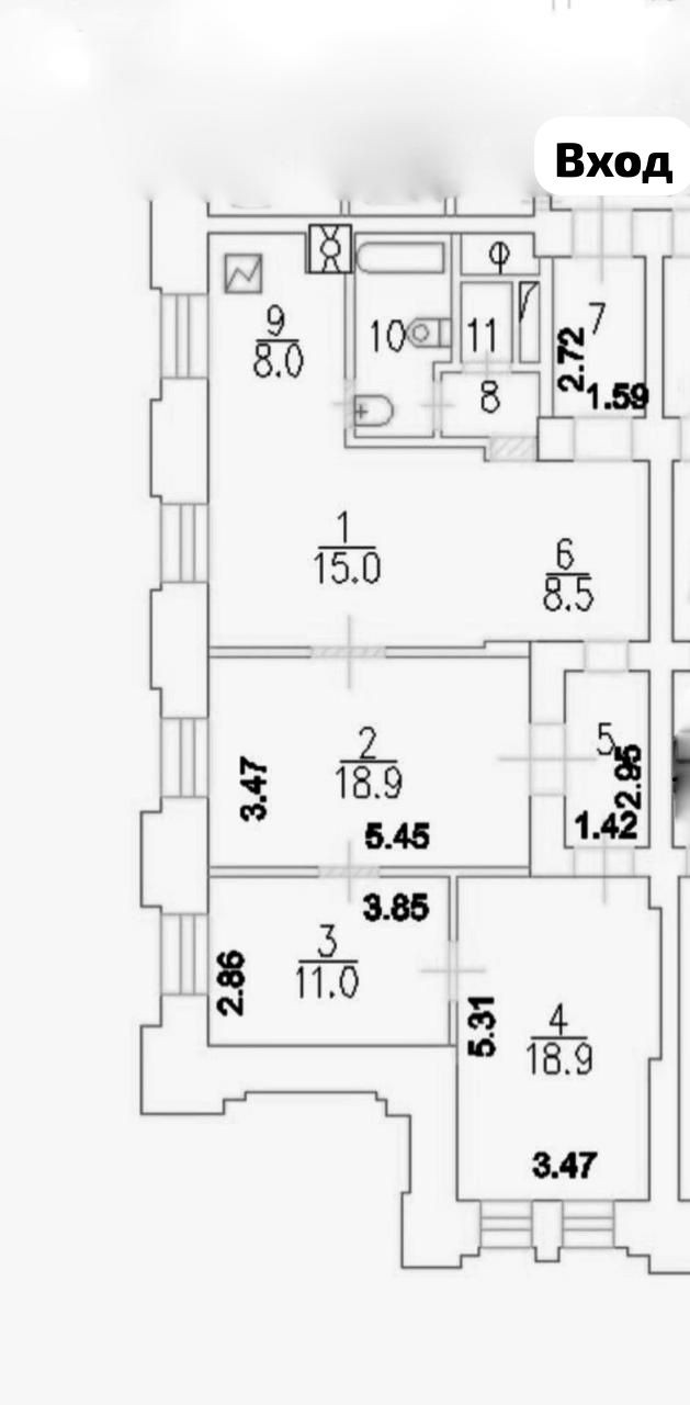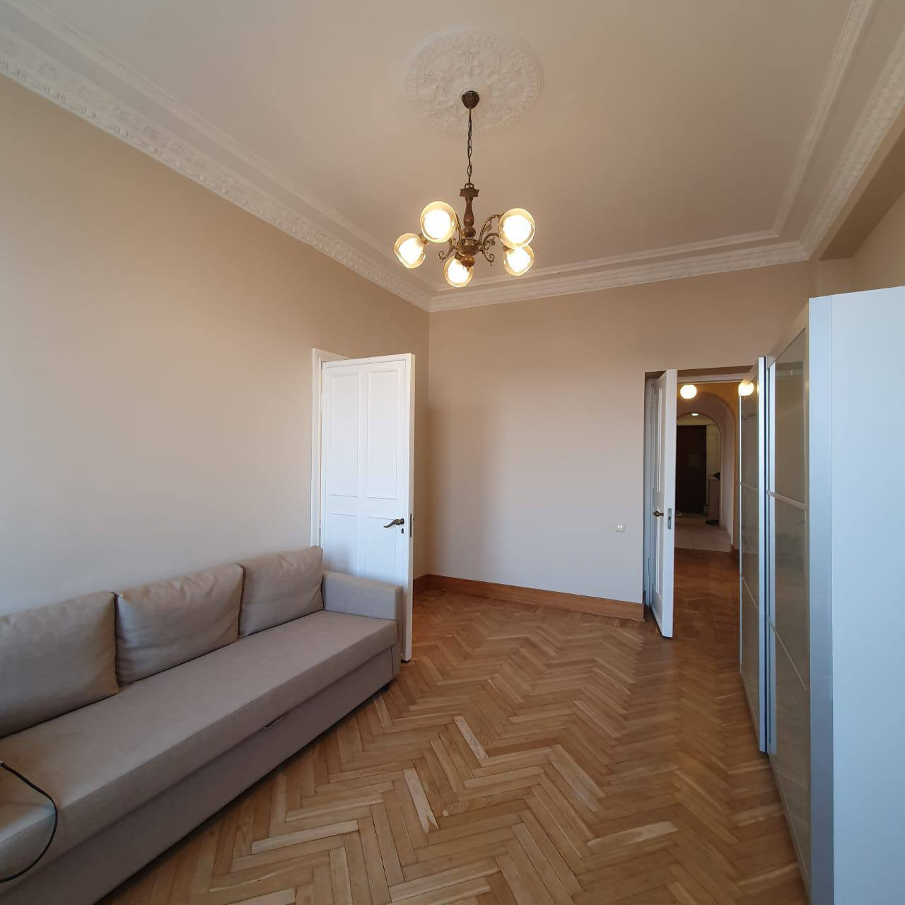 В квартире сделан косметический ремонт 3 года назад, общая площадь 97.1м., кухня-гостиная, 2 санузла, потолки 3.3м.