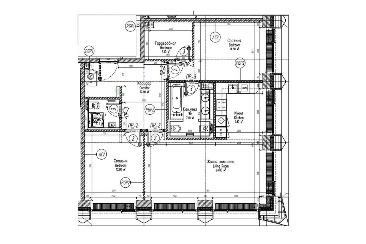 Лучшая планировка в комплексе. Удаленный от дороги корпус. Удачная планировка ( кухня-гостиная с большим количеством окон, 2 спальни с санузлами и гардеробными, постирочная)