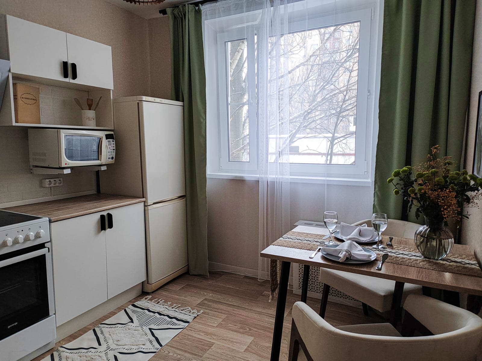 В квартире выполнен свежий ремонт, полностью заменены сантехника и проводка, кухня и мебель новые.