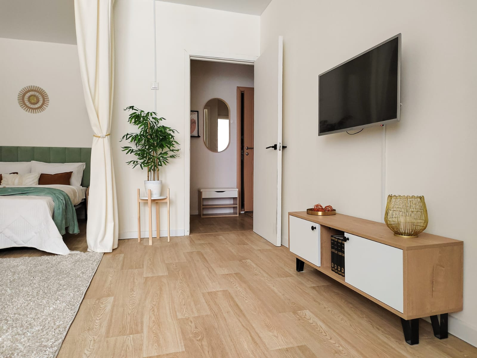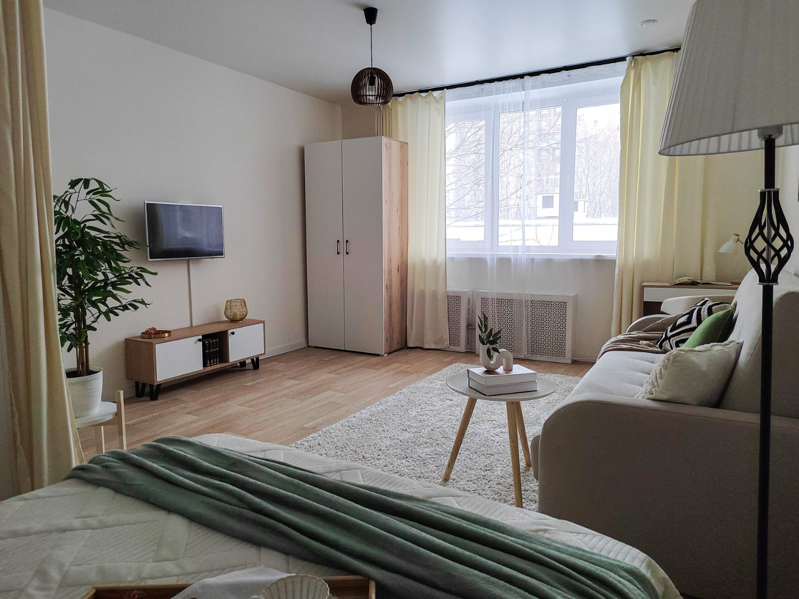 Светлая, просторная однокомнатная квартира полностью готова к проживанию. Лёгкий, ненавязчивый интерьер в скандинавском стиле, оформленный профессионалами, располагает к отдыху и расслаблению.