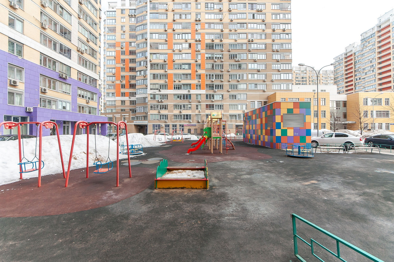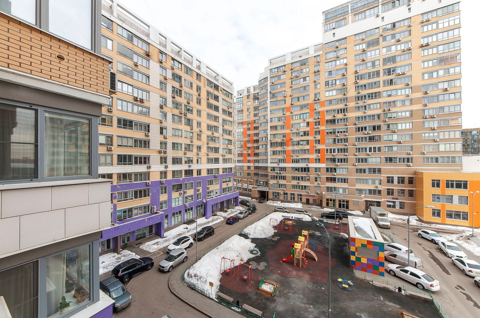 Большая территория жилого комплекса оборудована детскими площадками. На первых этажах размещены коммерческие объекты, что обеспечивает хорошую инфраструктуру комплексу (Вкусвилл, Sun School, Wildberries, Ozon, Яндекс Маркет, салоны красоты, аптека и тд.). Удобная локация как пешеходная, так  и транспортная.
