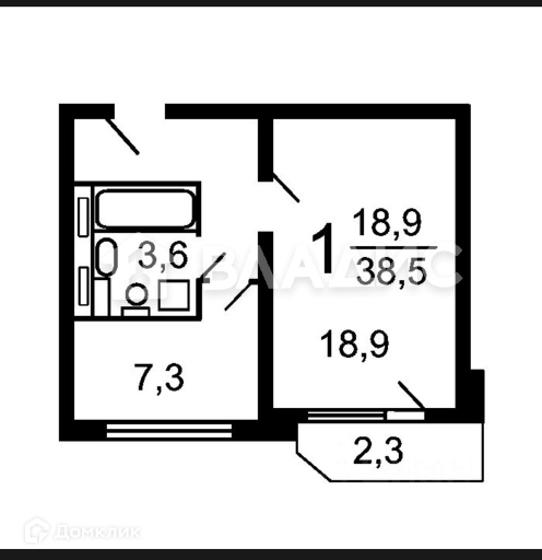 Общая площадь 36.7 м2