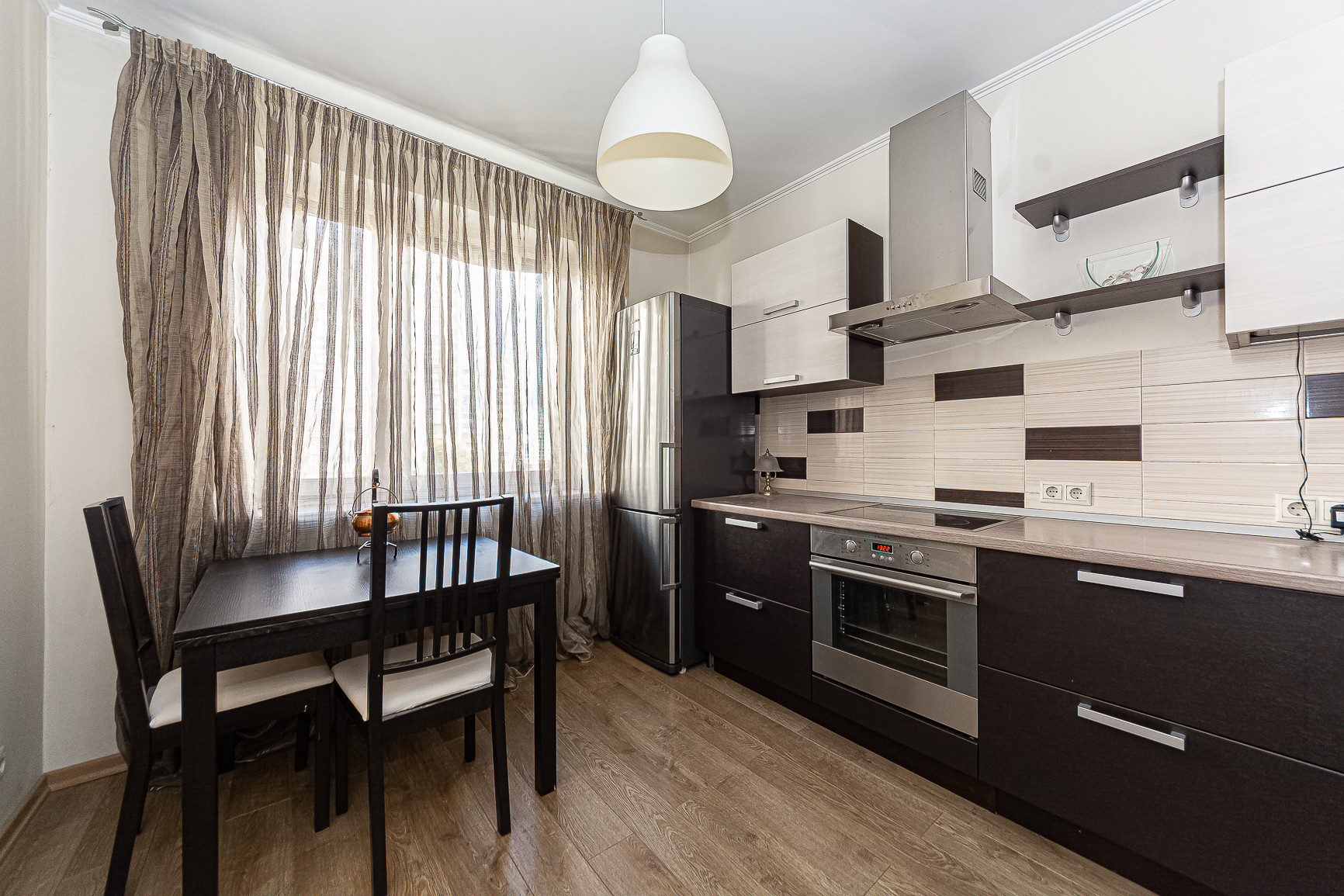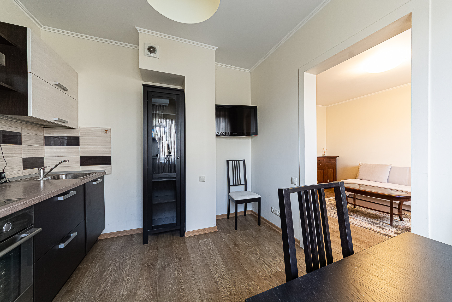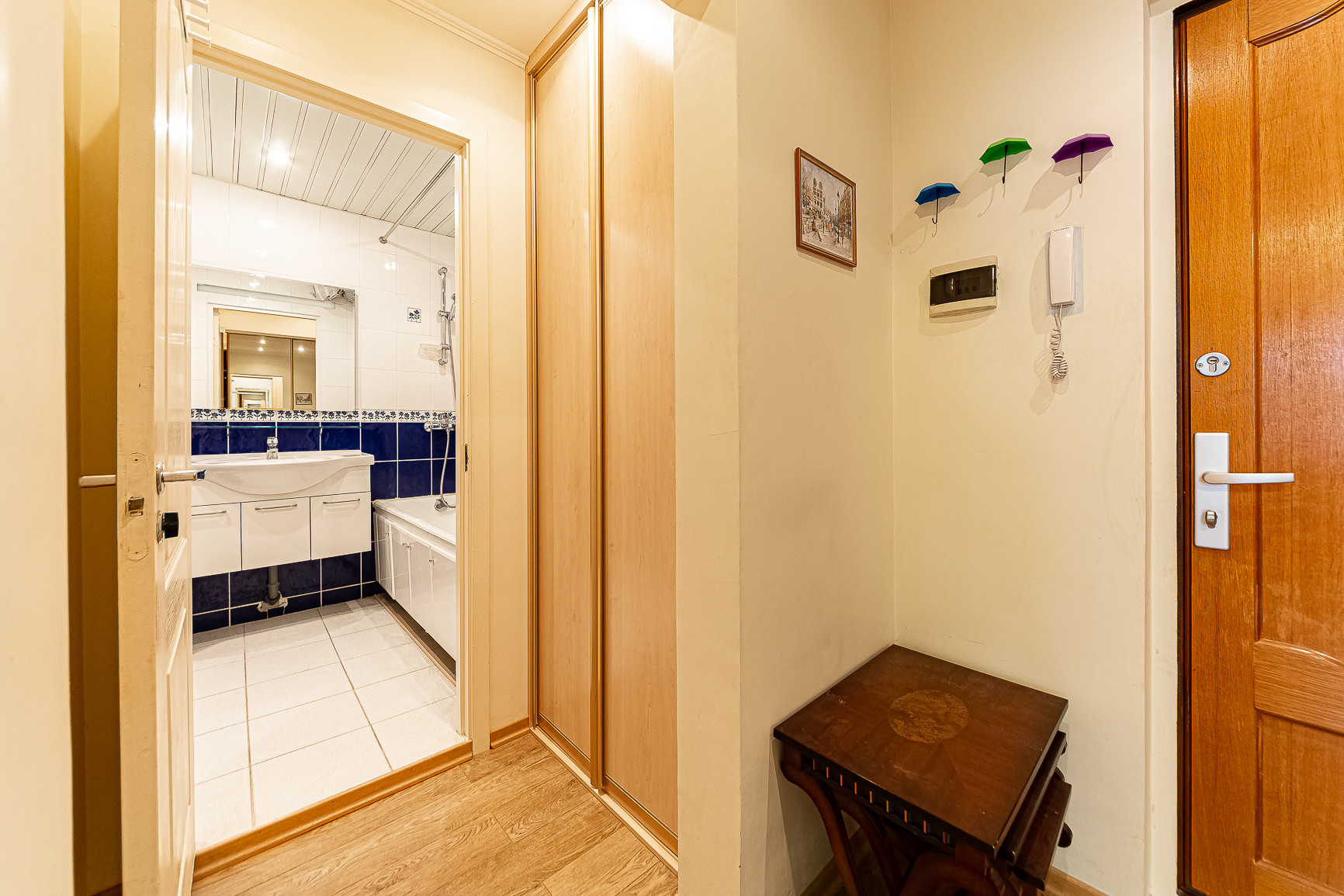 В коридоре два встроенных шкафа, в комнате итальянская мебель ручной работы и новый диван. Итальянская мебель не входит в стоимость.