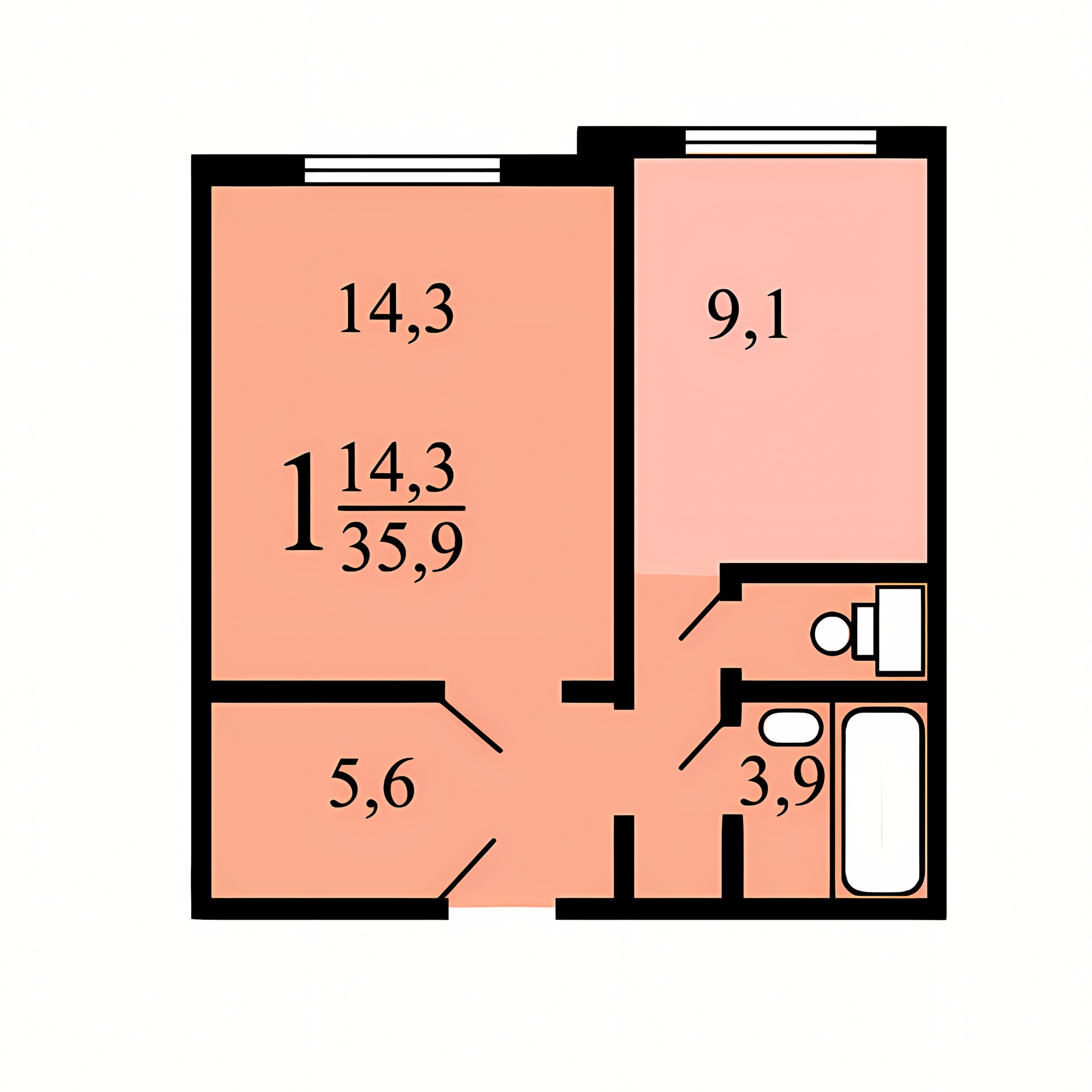 Жилая площадь 14.3 м2