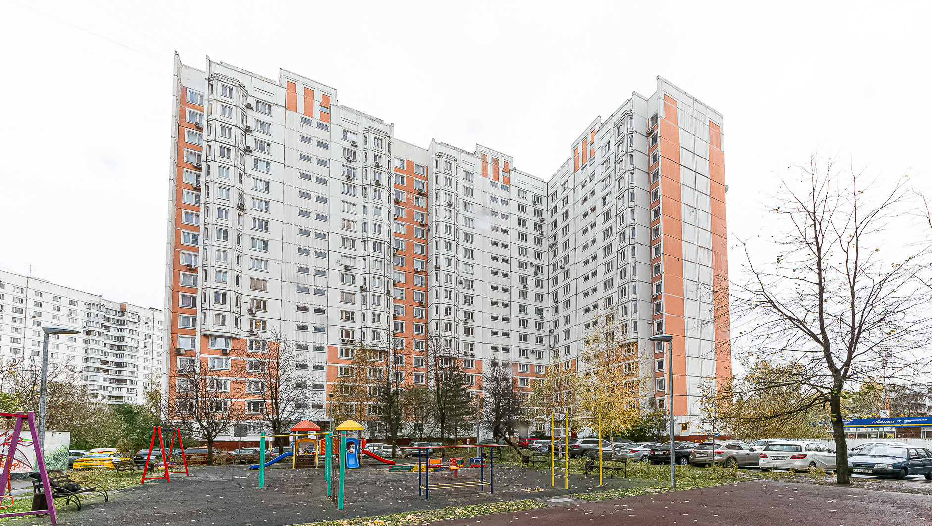Рядом с домом 2 торговых центра и магазины Ашан, Пятерочка, Билла.
