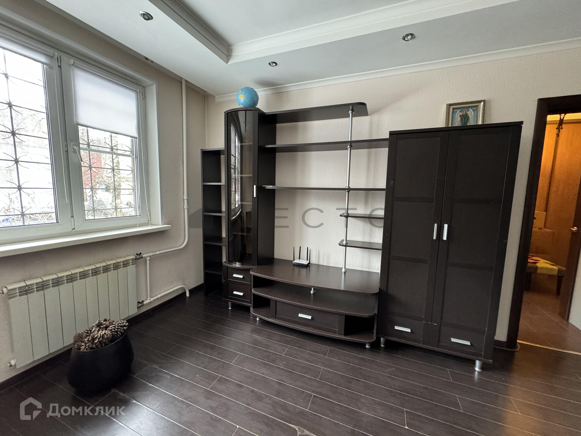 Кухонный гарнитур включает в себя встроенную технику, что облегчает приготовление пищи и хранение продуктов. Просторная комната позволяет свободно разместить мебель и создать комфортное пространство для отдыха и общения. Из окна открывается вид на тихий двор и сад. В прихожей имеются два встроенных шкафа, которые предоставляют достаточно места для хранения одежды и личных вещей.