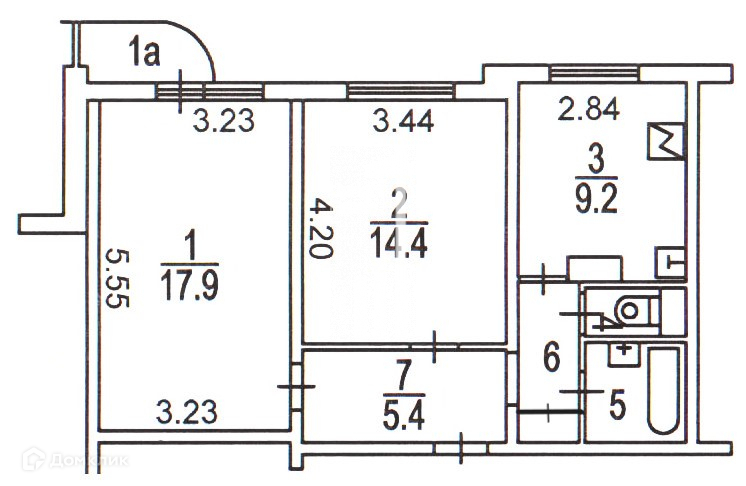Общая площадь 55 м2