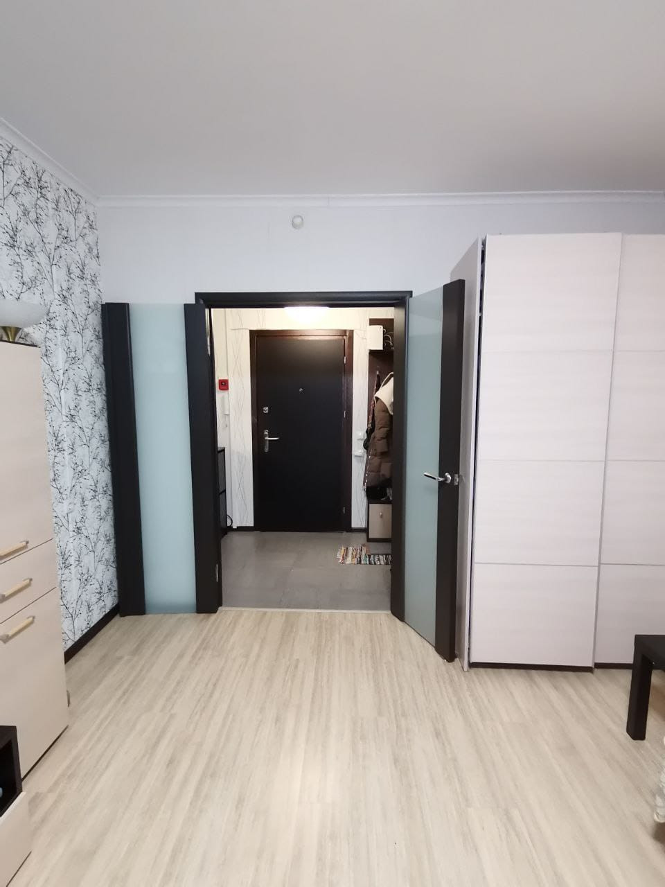 В квартире выполнен ремонт не требующих дополнительных вложений, можно заехать и жить, очень удобная продуманная планировка: общая площадь 40,8 кв.м, комната 18кв.м, кухня 9,4 кв.м, раздельный с/у, просторная гардеробная, балкон застеклен.