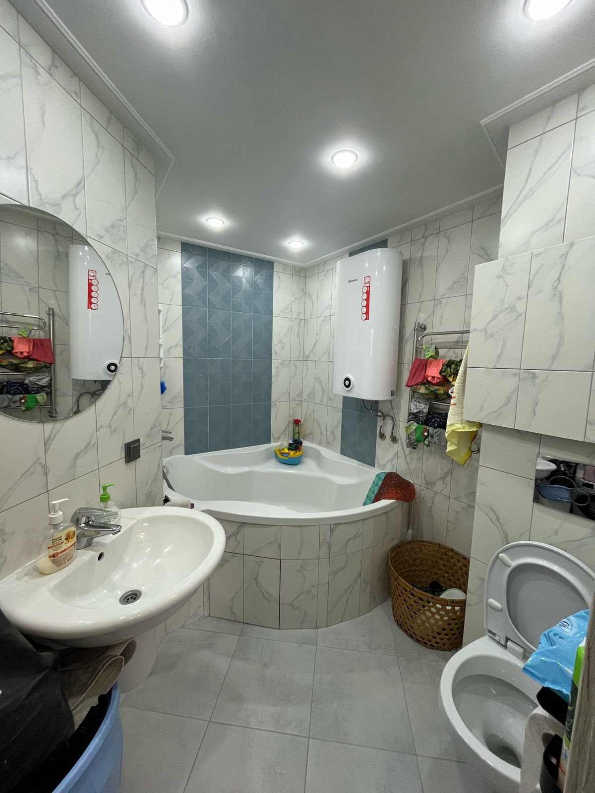 - Роскошная ванная комната с джакузи и современными сантехническими приборами, установлены приборы от протечек, чем улучшит качество и спокойствие жизни и стильным дизайном и расслабляющей атмосферой.
