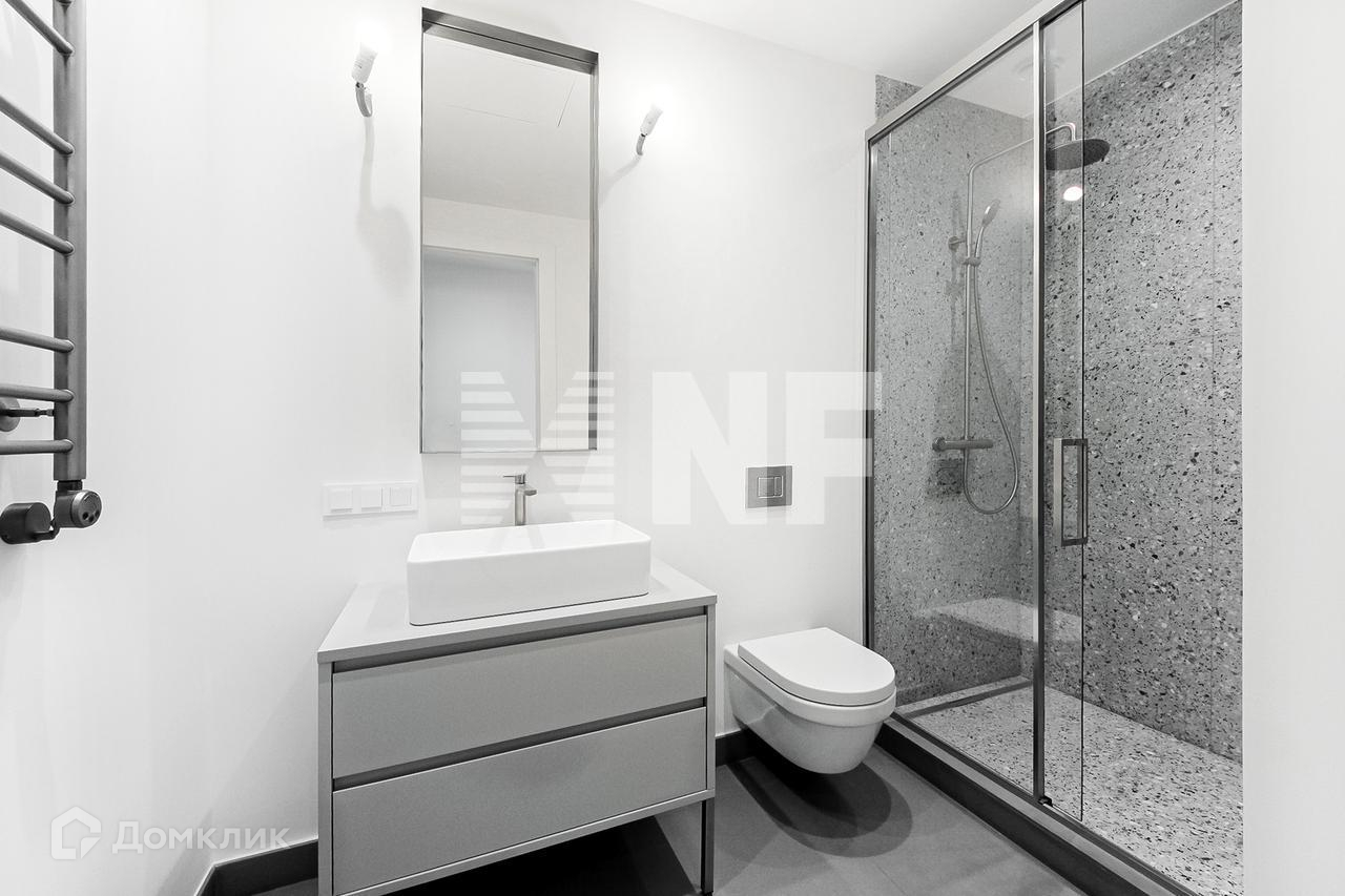 Выполнена финишная отделка в современном стиле, на полу паркет, встроенная кухня итальянского бренда Dada оснащена бытовой техникой Neff, в санузлах установлена премиальная сантехника.