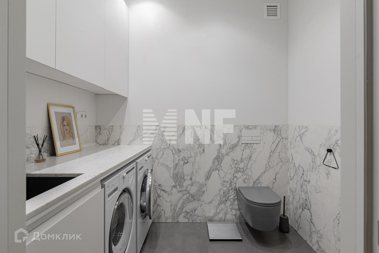Планировка: просторная гостиная с зоной кухни, 2 спальни с собственными ванными и гардеробными, гостевой санузел, постирочная. Есть антресоль с зоной отдыха.