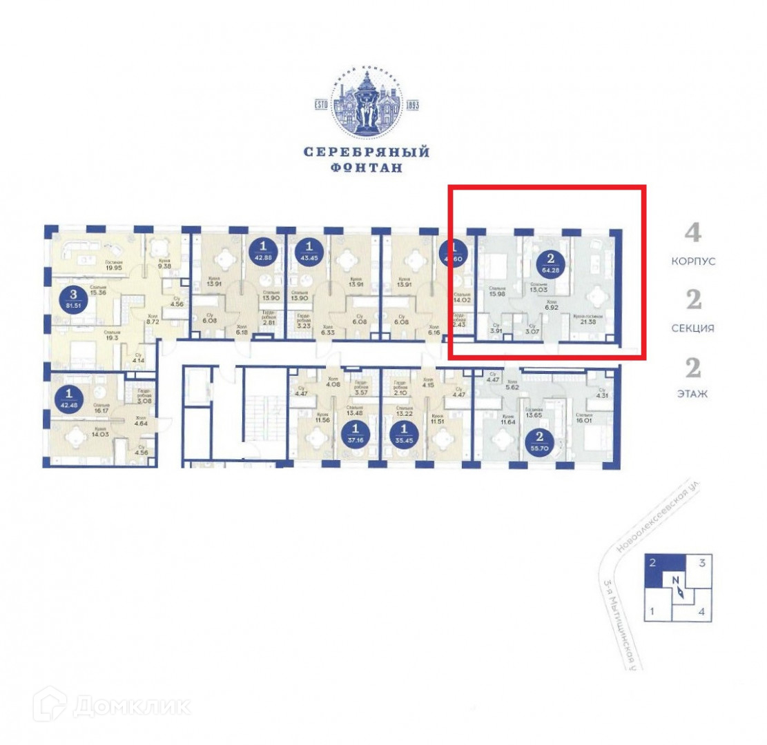 Арт. 61220090 ПРОСТОРНЫЕ евро 3-комнатные апартаменты в ЖК Серебряный фонтан корпус 4.