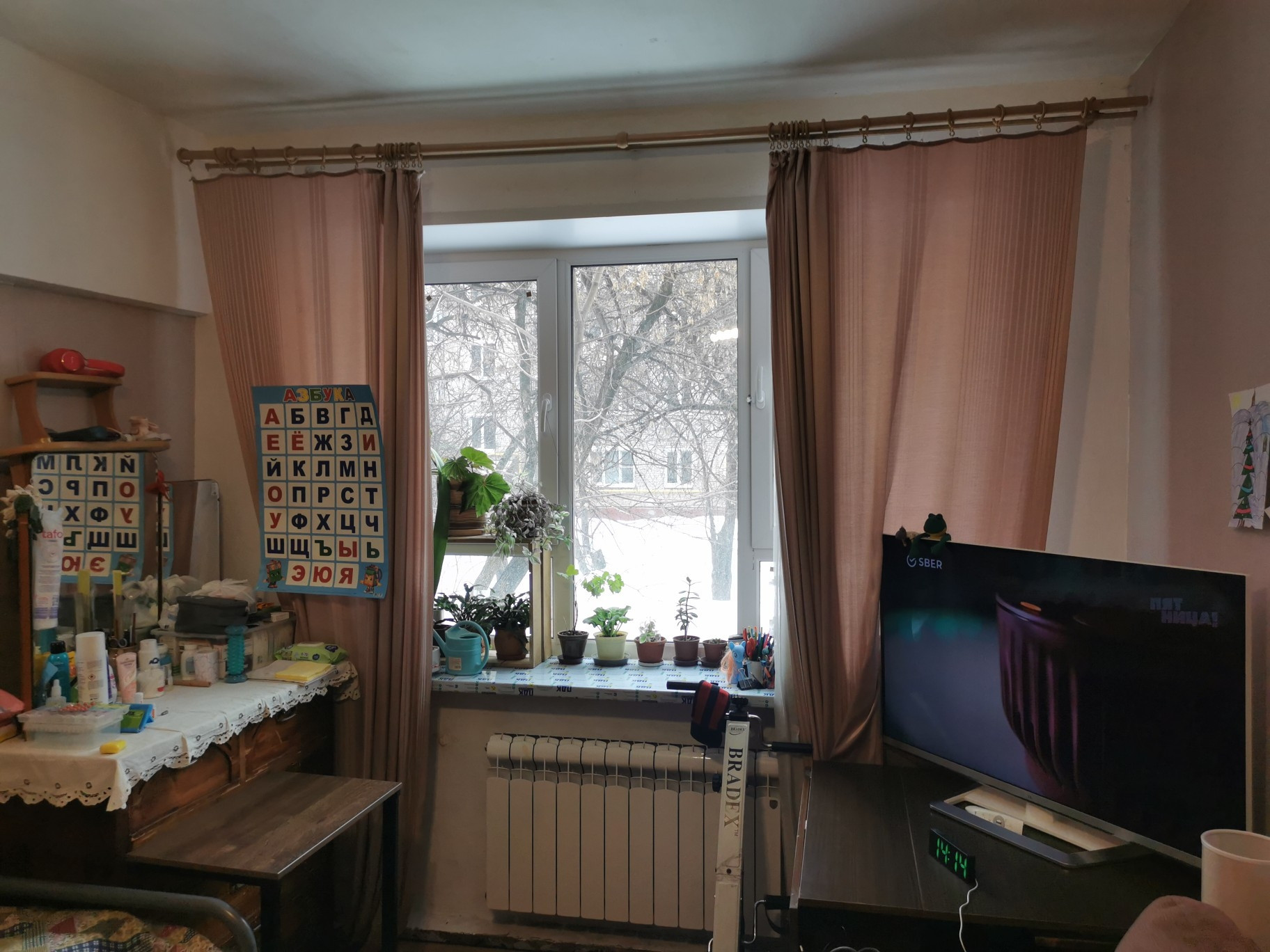 Вид из окна: во внутренний двор, высокий первый этаж;