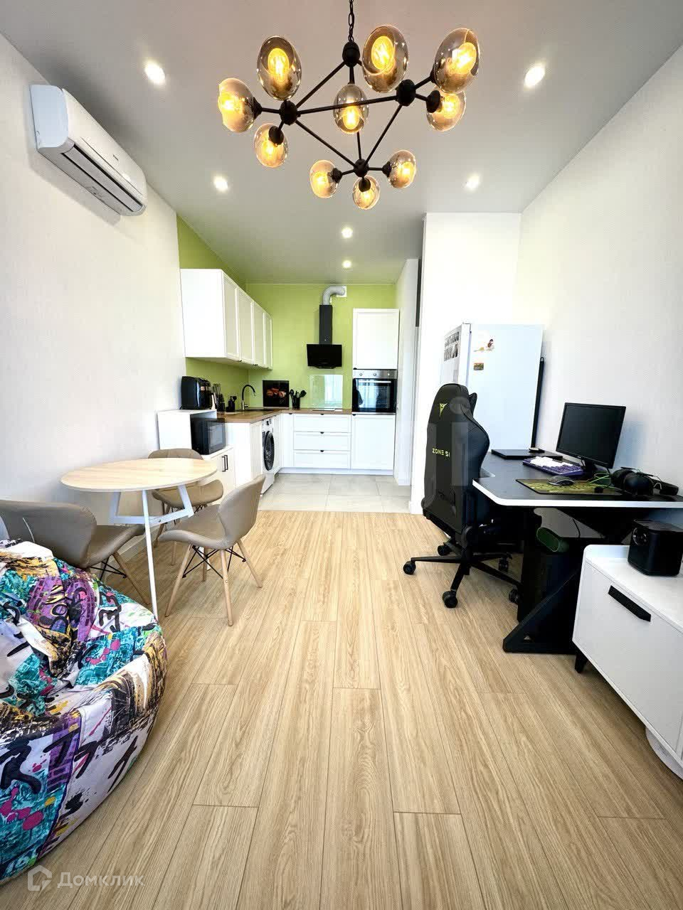 Квартира с новой и современной техникой: посудомоечная машина, стиральная машина, духовой шкаф, холодильник, вытяжка, варочная поверхность, кондиционер. Со всей необходимой мебелью.