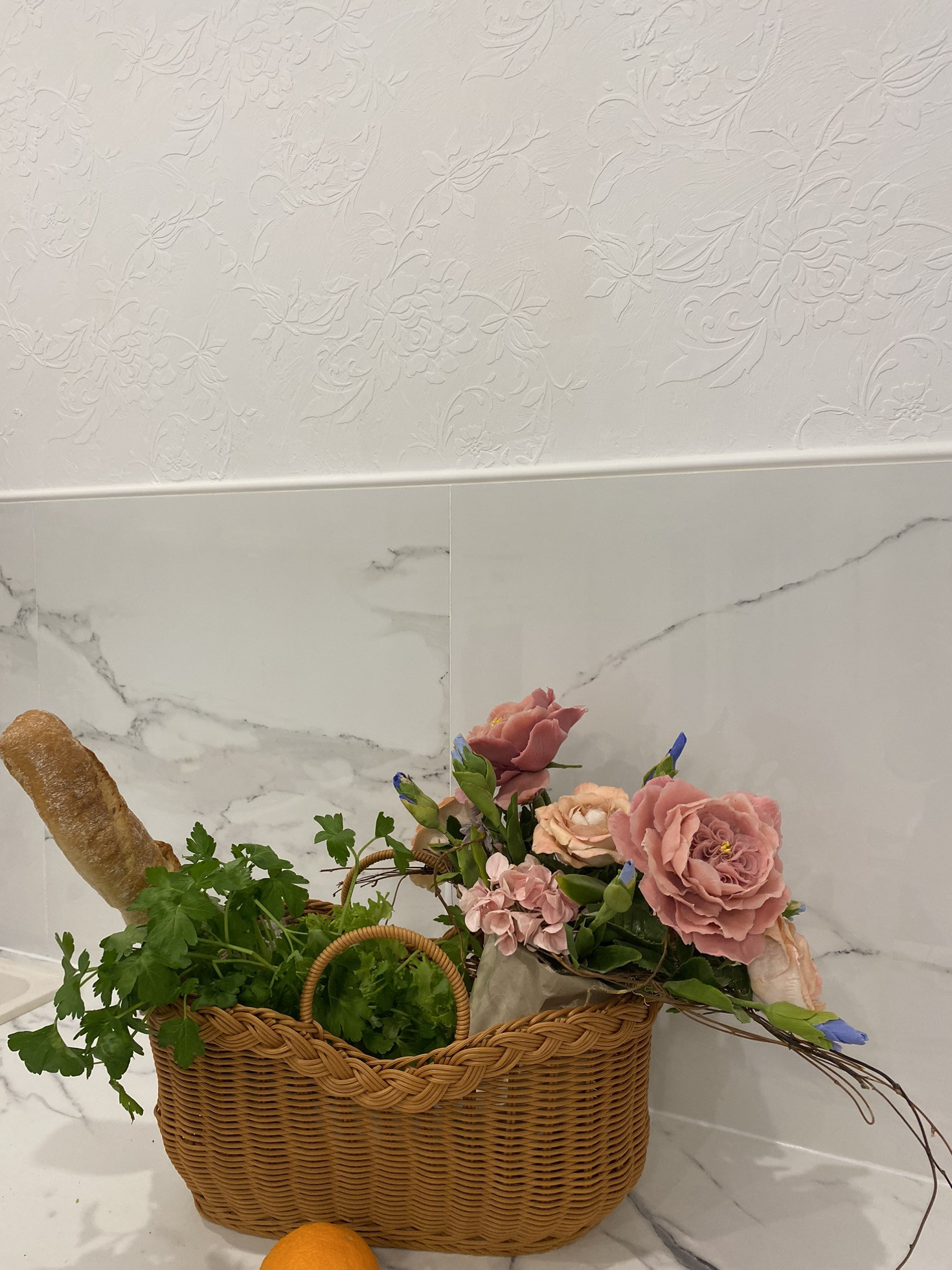 •очень красивый пол из дорогого кварц-винила и плитки.