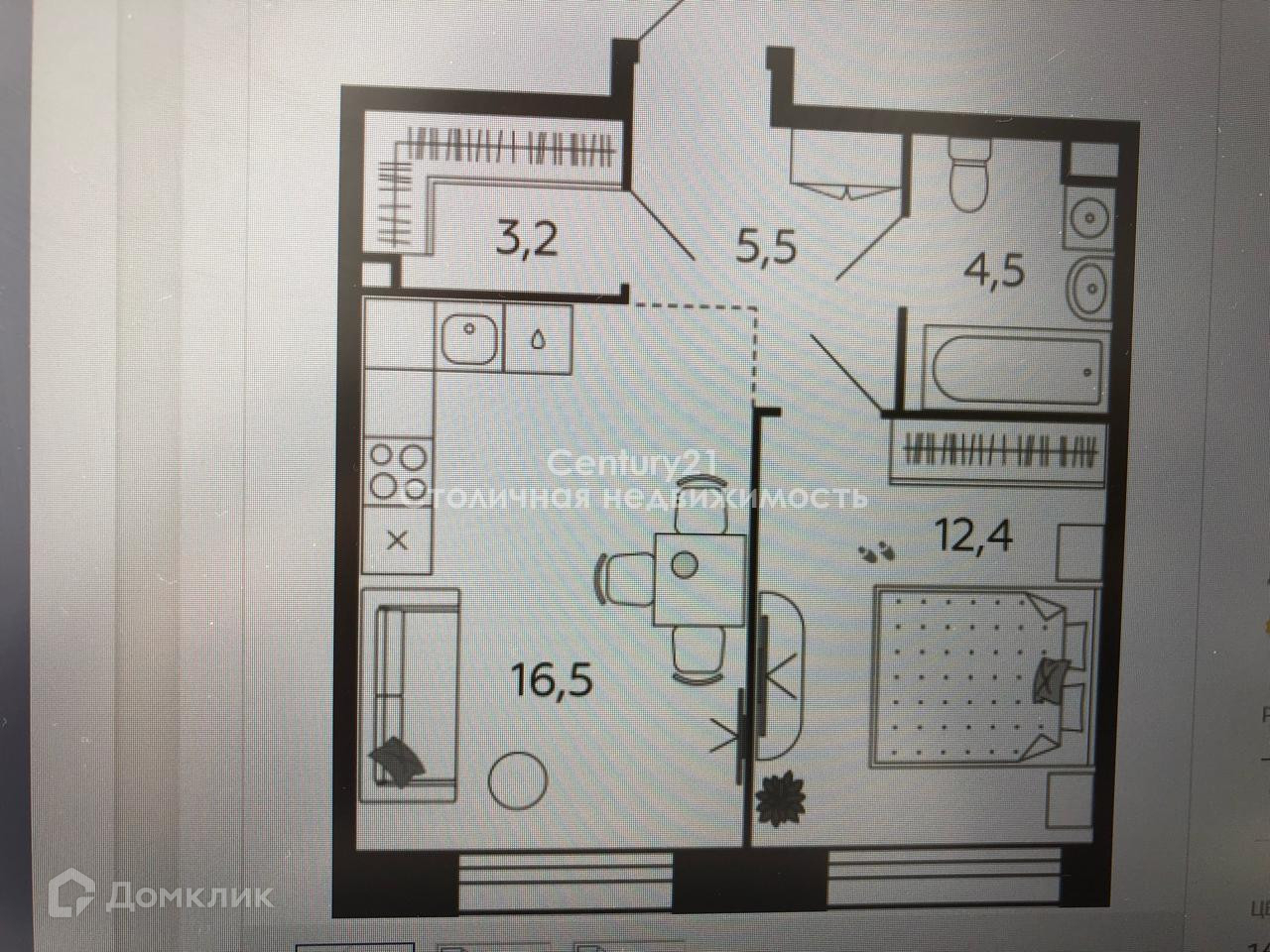 Жилая площадь 12.4 м2