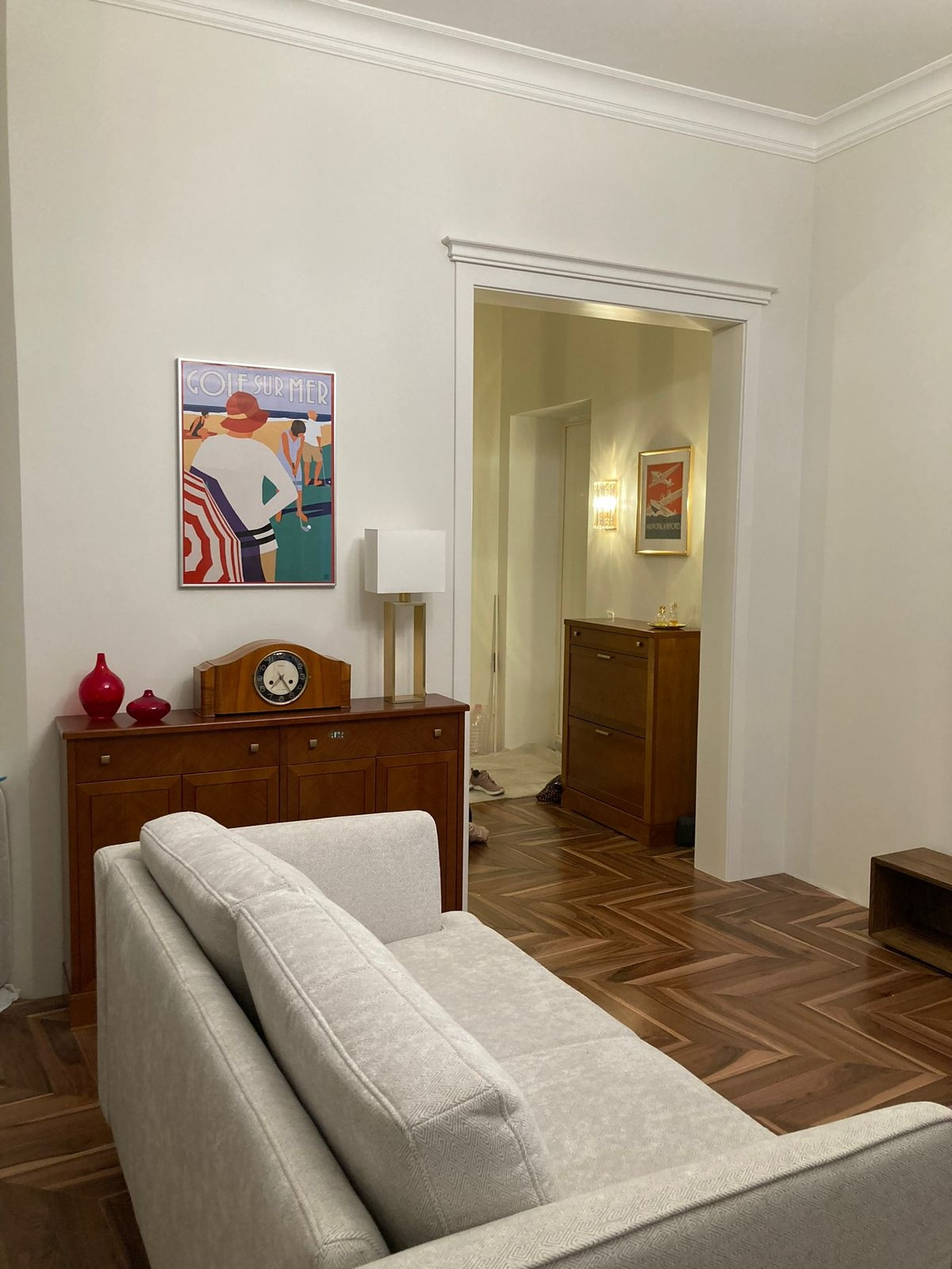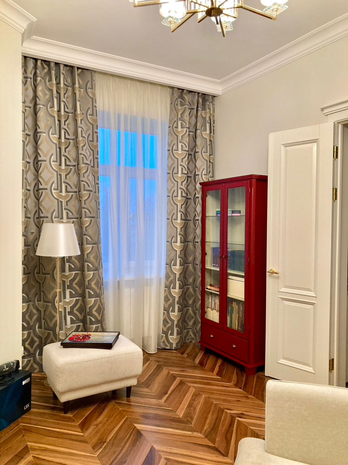 Квартира в стиле Арт Деко, ремонт 2023 года с использованием дорогих материалов, полностью заменены коммуникации, сантехника, электрика, звукоизоляция пола и стен, паркет - американский орех, итальянская плитка, идеальные стены - краска, межкомнатные двери - массив высотой 2,3 метра, входная дверь усиленная противовзломная. Вся мебель и бытовая техника премиум класса ( кондиционер, стирально-сушильная машина, посудомойка, вытяжка, телевизор) остаются и включены в цену.