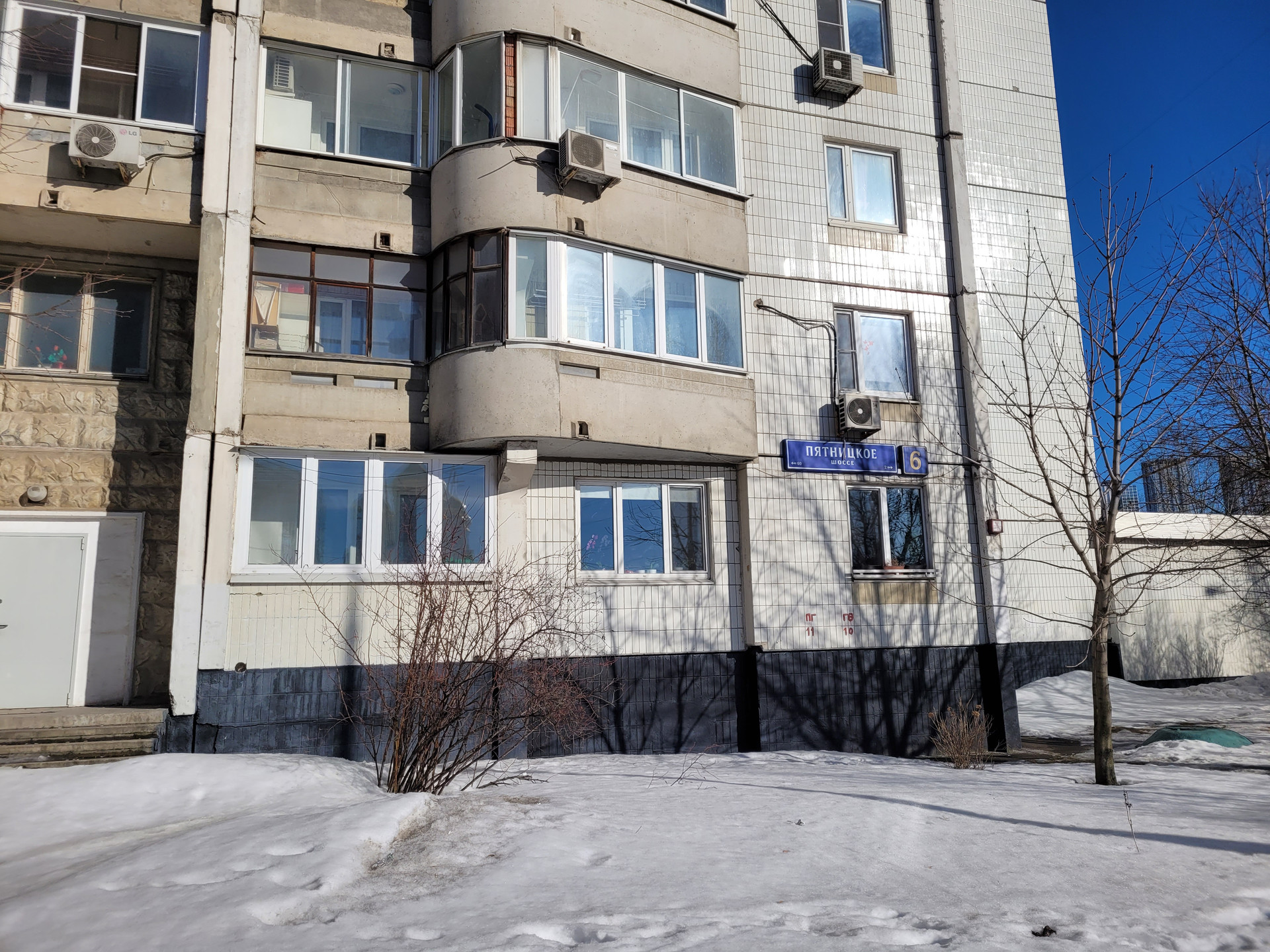 Остановка общественного транспорта рядом с домом. Удобные выезды на Пятницкое,  Волоколамское шоссе и МКАД.