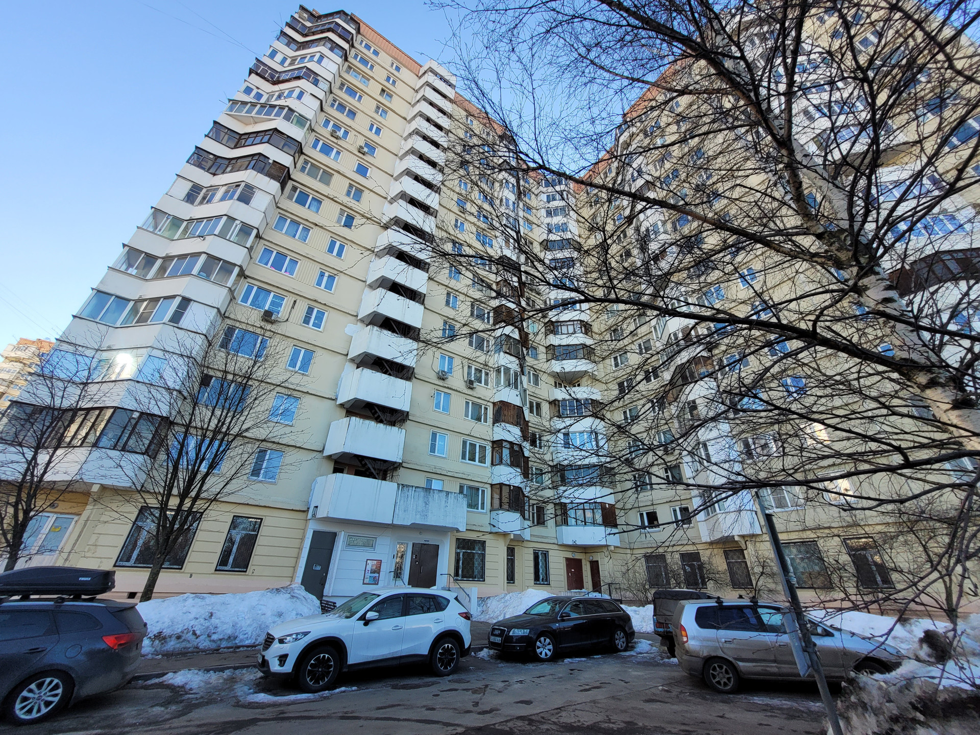 Благоустроенный двор. Парковка стихийная, мест достаточно. Во дворе дома детский сад, школа, магазины, через дорогу Храм, Митинский парк.