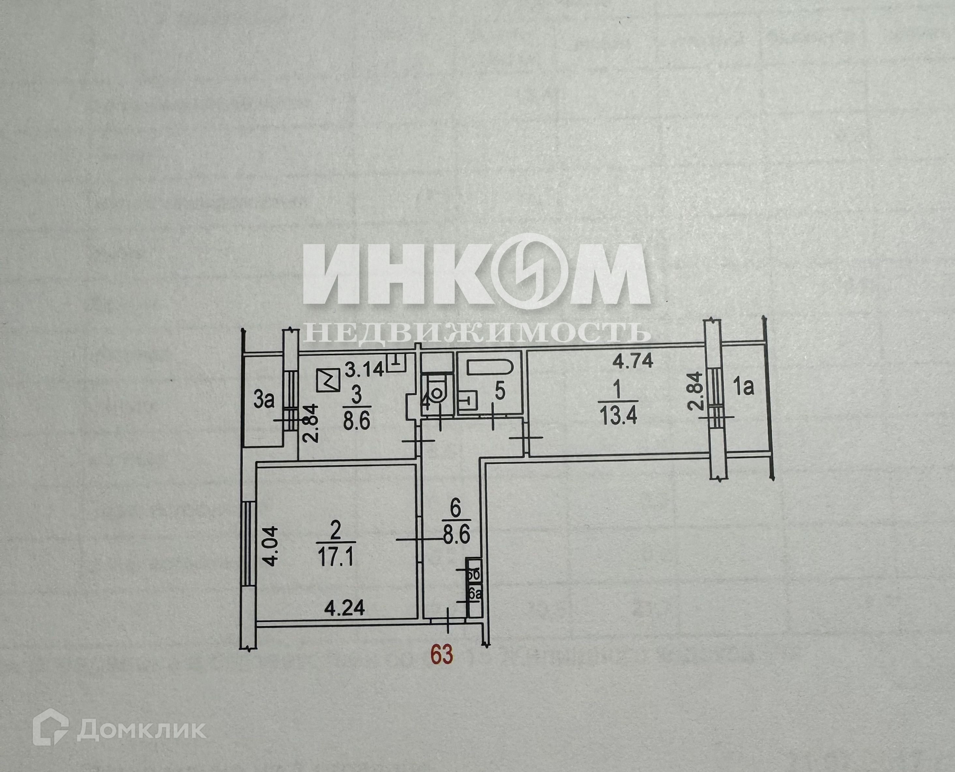 Общая площадь 52.2 м2