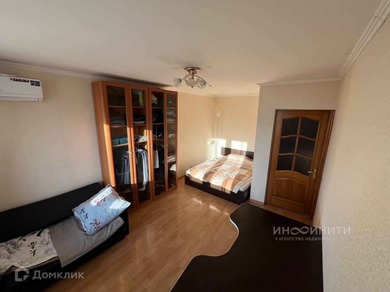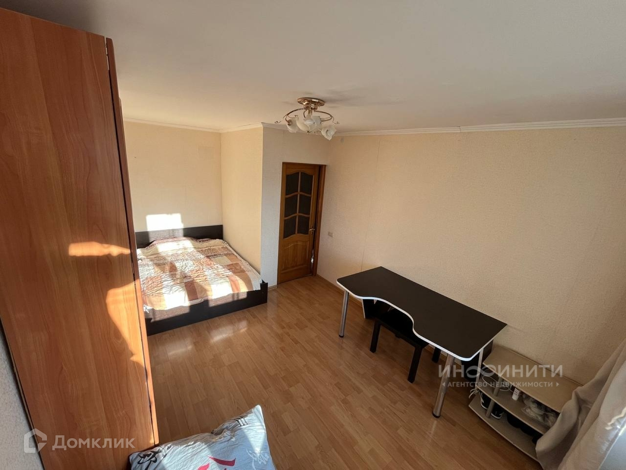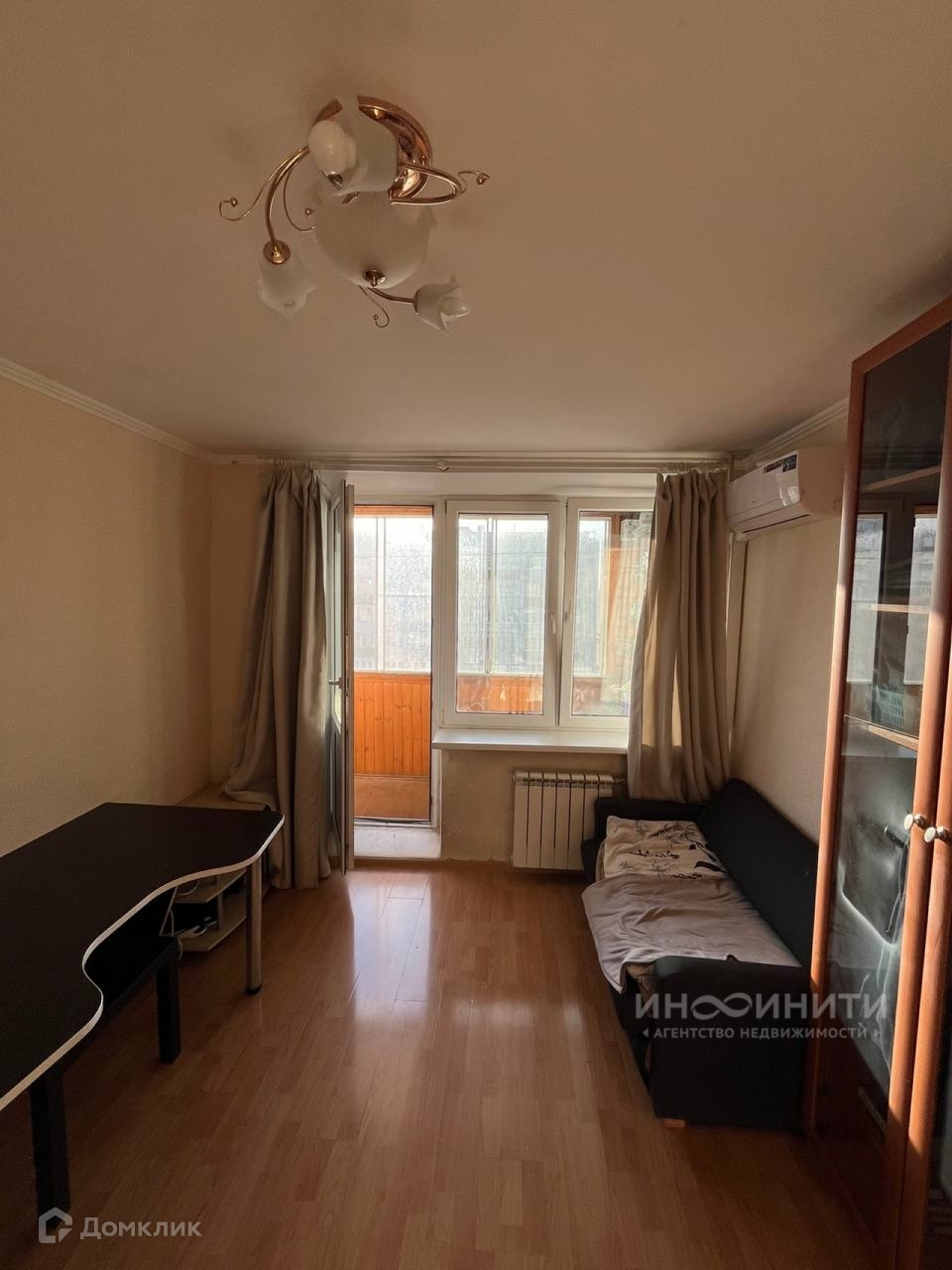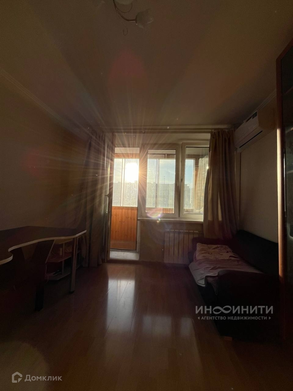 В комнате (16 м2) ламинат в хорошем состоянии, пол ровный, стяжка.Есть вариантивность расположения мебели. 2х камерный стеклопакет.