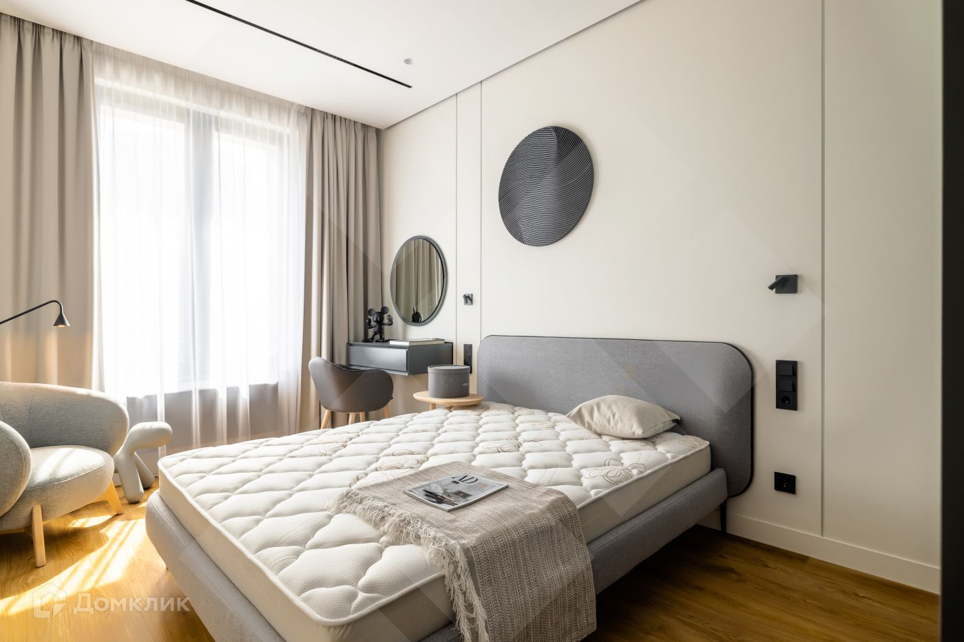 Квартира со свежим дизайнерским ремонтом! НИКТО НЕ ЖИЛ! Качественный ремонт с использованием премиальных материалов делался для себя. Планировкой предусмотрены две спальни и кухня-гостиная. Два с\у с ванной и душевой кабиной. Квартира готова к проживанию - в ней есть абсолютно все! Полностью укомплектованная бытовой техникой кухня, дизайнерская мебель и элегантный декор. Трекинговое и интерьерное освещение. Полноценная гардеробная комната, с/у со стиральной и сушильной машиной. Минимум соседей - всего 4 квартиры на этаже.
