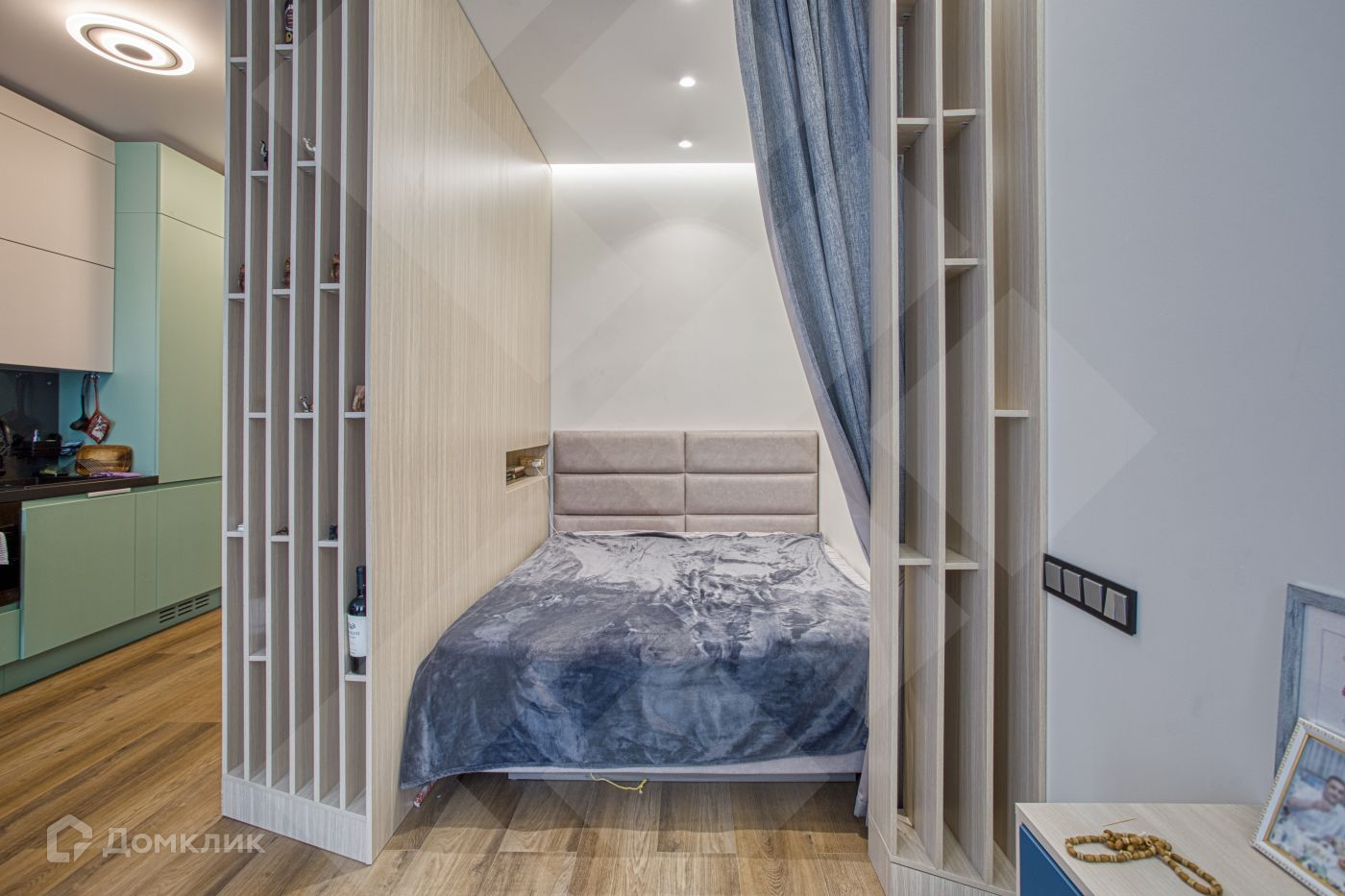 Функциональная планировка включает в себя: просторную кухню-гостиную c с зоной спальни, совмещённый санузел, холл.