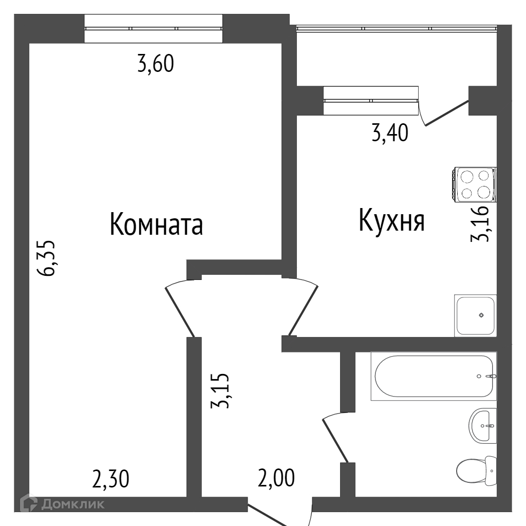 Классическая планировка однокомнатной квартиры, которая включает в себя: