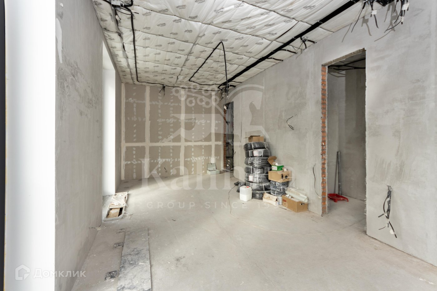 Разведено все электричество, сделана шумоизоляция по стенам и потолку, сделана разводка под кондиционеры.