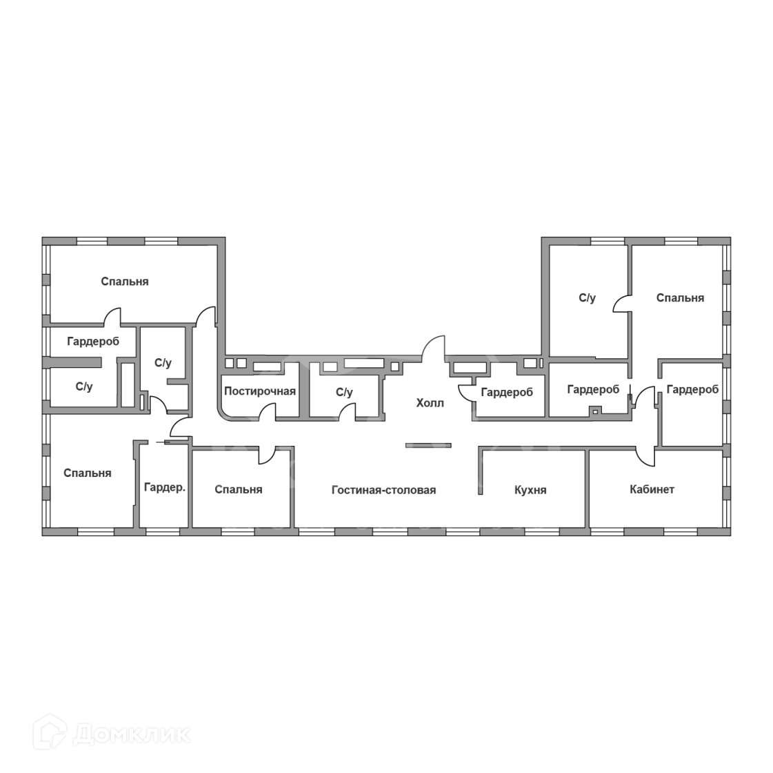 Возможная планировка: холл, гостиная со столовой зоной, кухня, кабинет, гостевой санузел, постирочная, гостевая спальня, мастер-спальня  с ванной комнатой и двумя гардеробными, спальня с ванной комнатой и гардеробной, детская спальня с ванной комнатой и гардеробной. Практически все ванные комнаты и гардеробные с окнами.