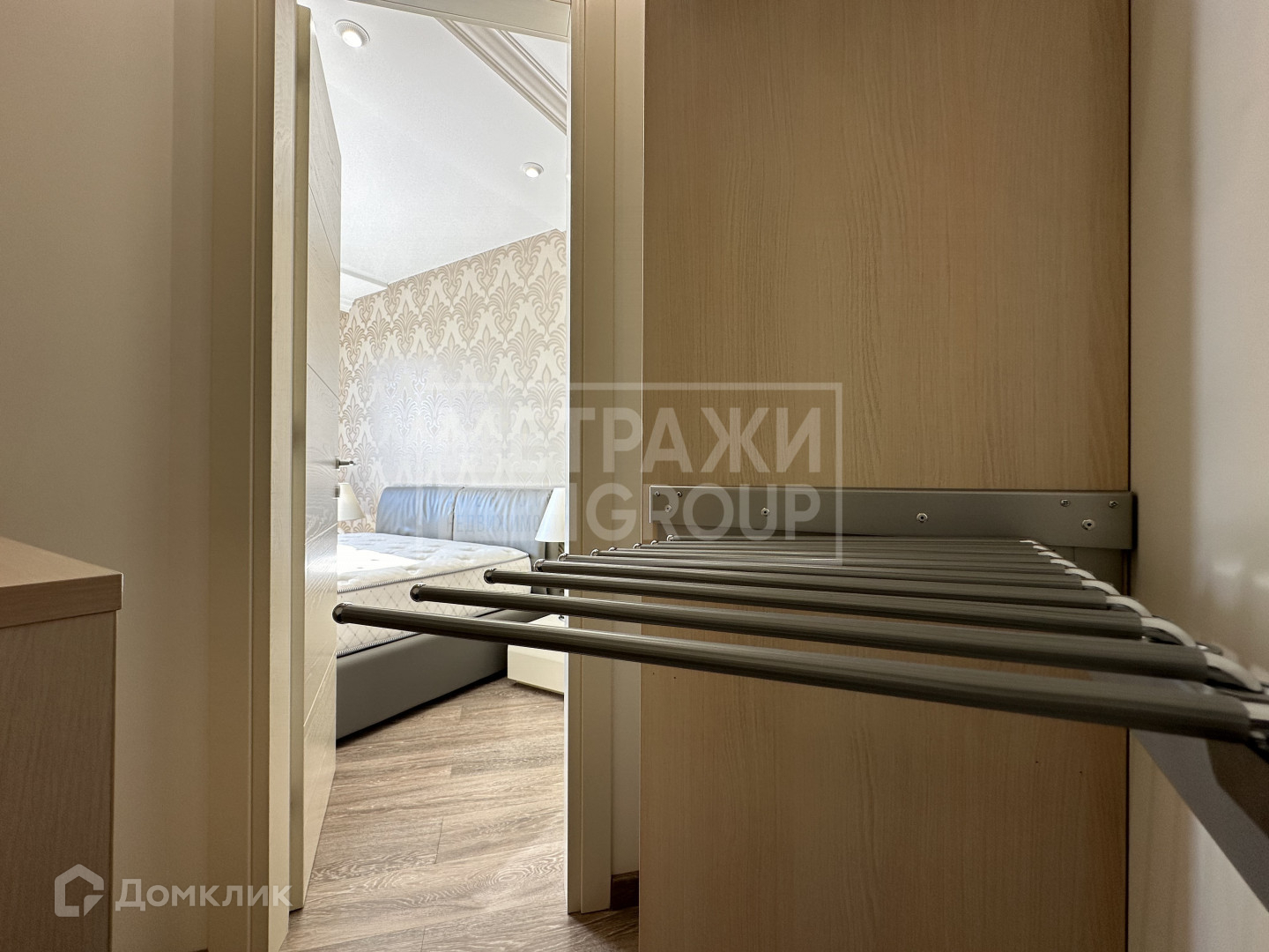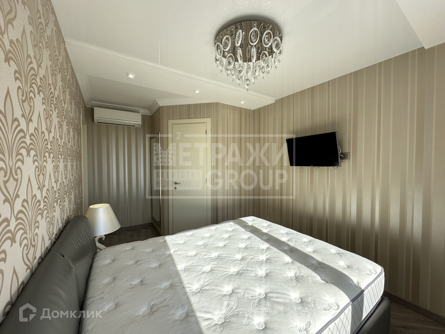 В изолированной спальне 13 кв.м большая кровать производства Италия с ортопедическим матрасом и вместительной гардеробной, тихий кондиционер Mitsubishi.