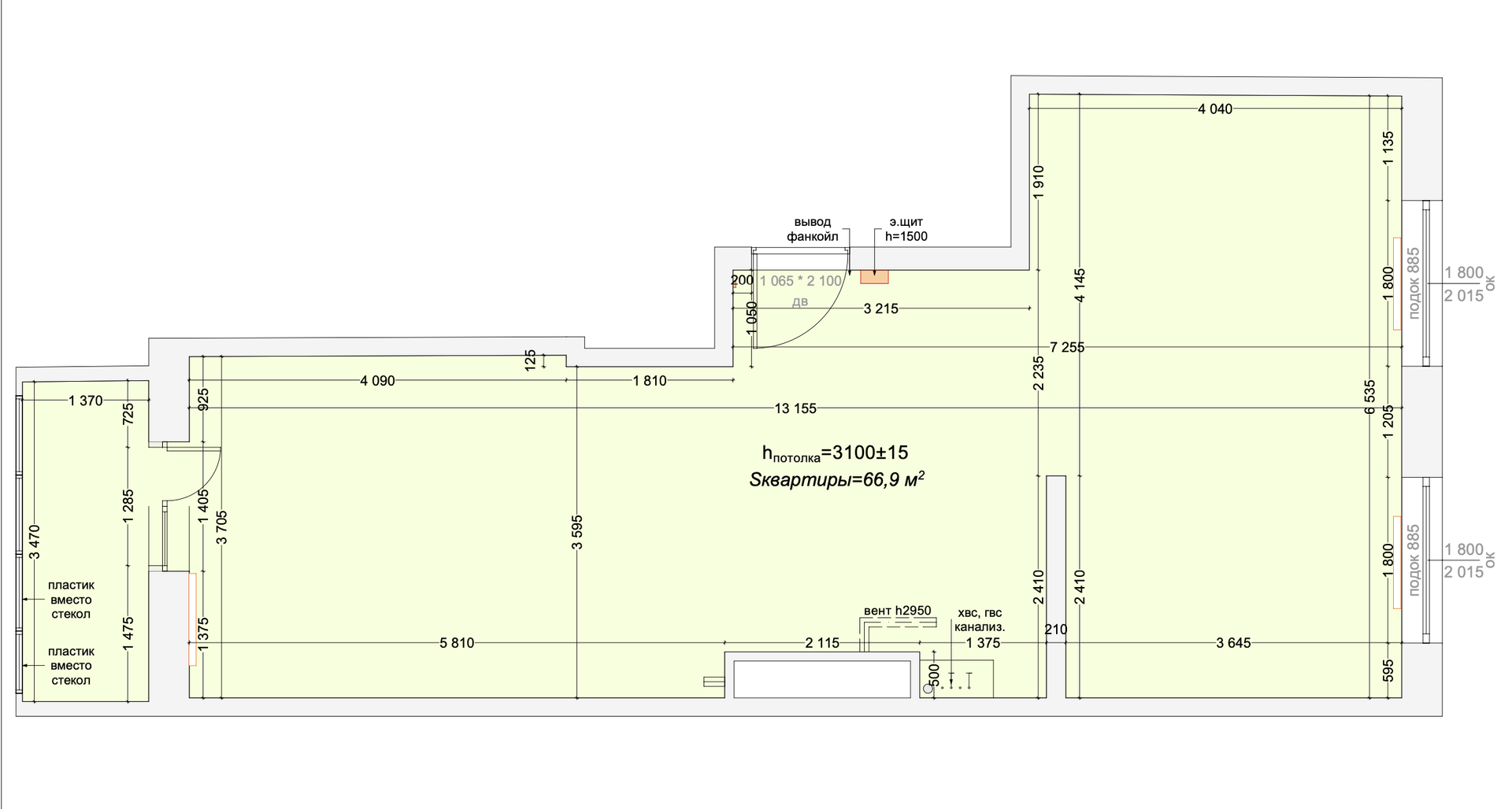 Высота потолков 3 м