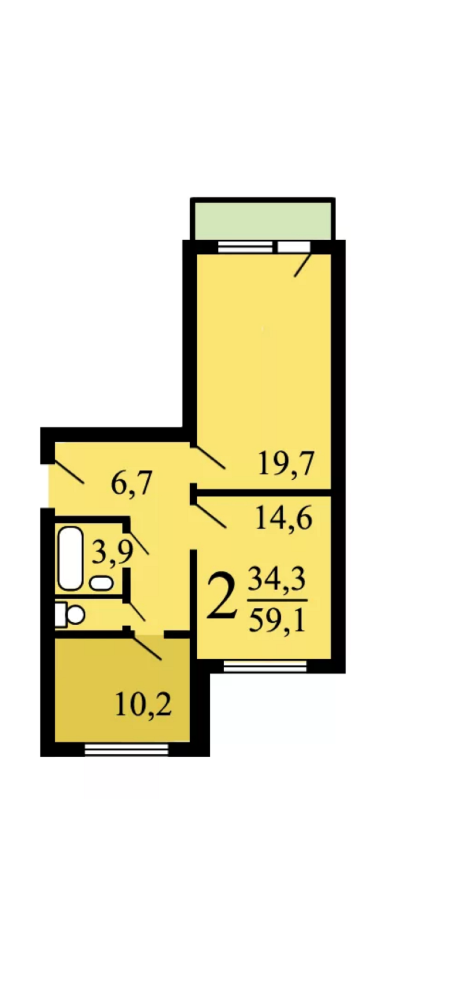 Общая площадь 57 м2