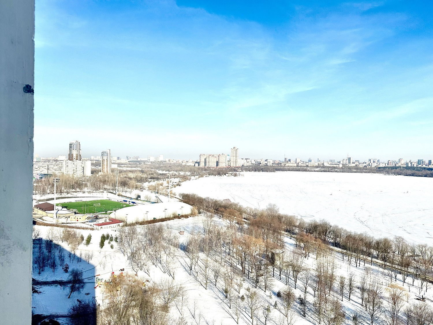 Видовая квартира, у Строгинского залива и парка. Панорамный вид на реку и Москву, на берегах поймы есть обустроенные пляжи с детскими спортивными площадками, беседками, кафе, раздевалками, оборудованными душем. Здесь часто проходят соревнования по полетам на необычных самодельных аппаратах. Жемчужиной Строгинской поймы считается ферма, на которой содержатся фазаны разных пород — полюбоваться птицами может каждый желающий.