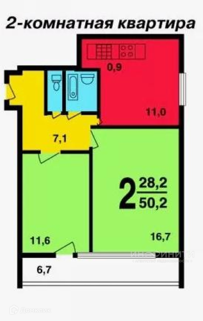 Общая площадь 50.2 м2