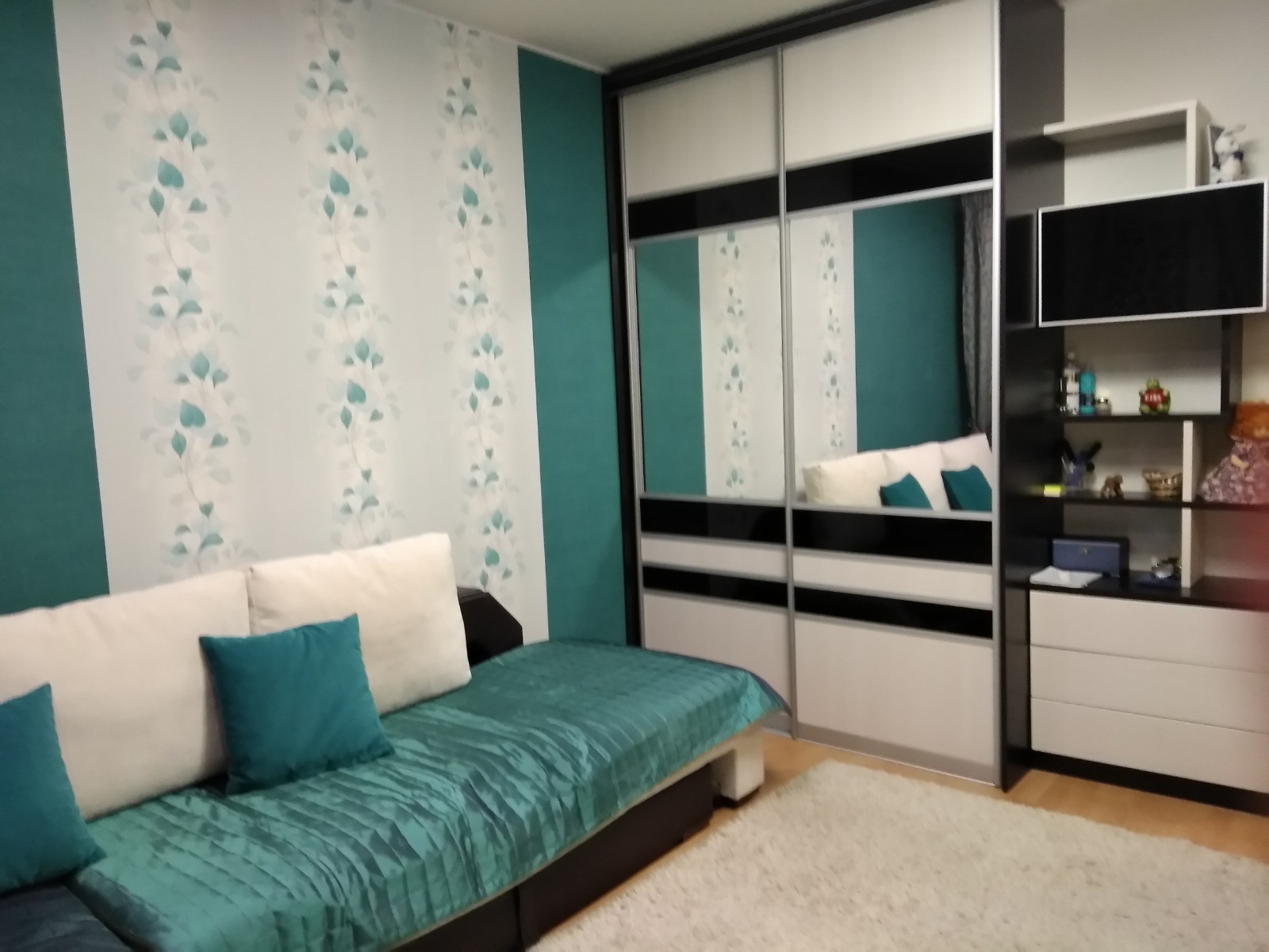 Ремонт ранее делали для себя 7 лет назад. Стены ровные. Мебель так же устанавливали качественную, соблюдая цветовую гамму и стиль  ремонта.