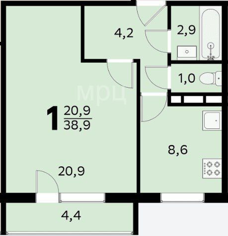 Общая площадь 38.9 м2