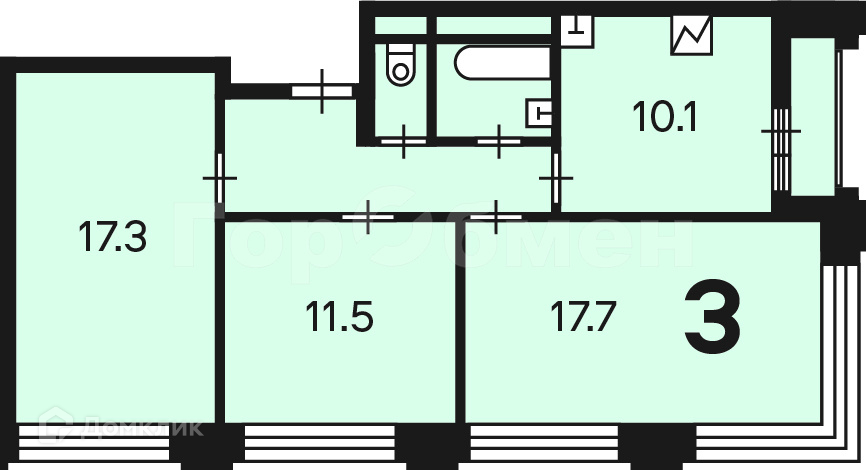В квартире сделан качественный муниципальный ремонт, можно сразу заехать и жить. До вас никто не жил. Комнаты 17,3м2+11,5м2+17,7м2, кухня 10,1м2, лоджия, раздельный сан.узел.