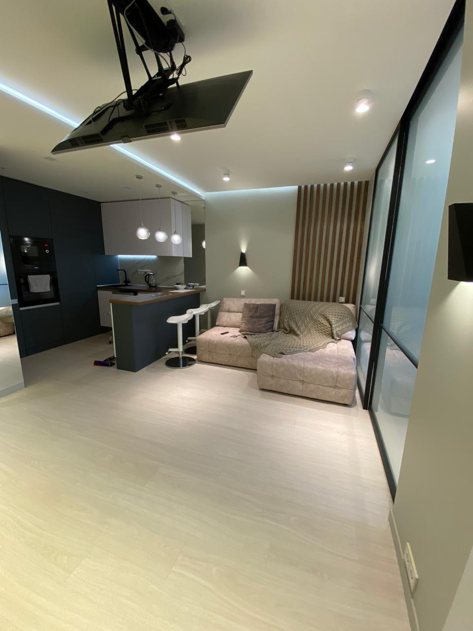 Ремонт квартиры делали для себя.  С участием дизайнера, все детали продуманы , для комфортной жизни. Ремонт на гарантии, сохранены чеки и акты выполненных работ.  Планировка:  Кухня-гостиная, 2 изолированные комнаты (спальная и детская), гардеробная, постирочная, санузел совмещенный. Квартира укомплектована самой современной бытовой техникой и мебелью.