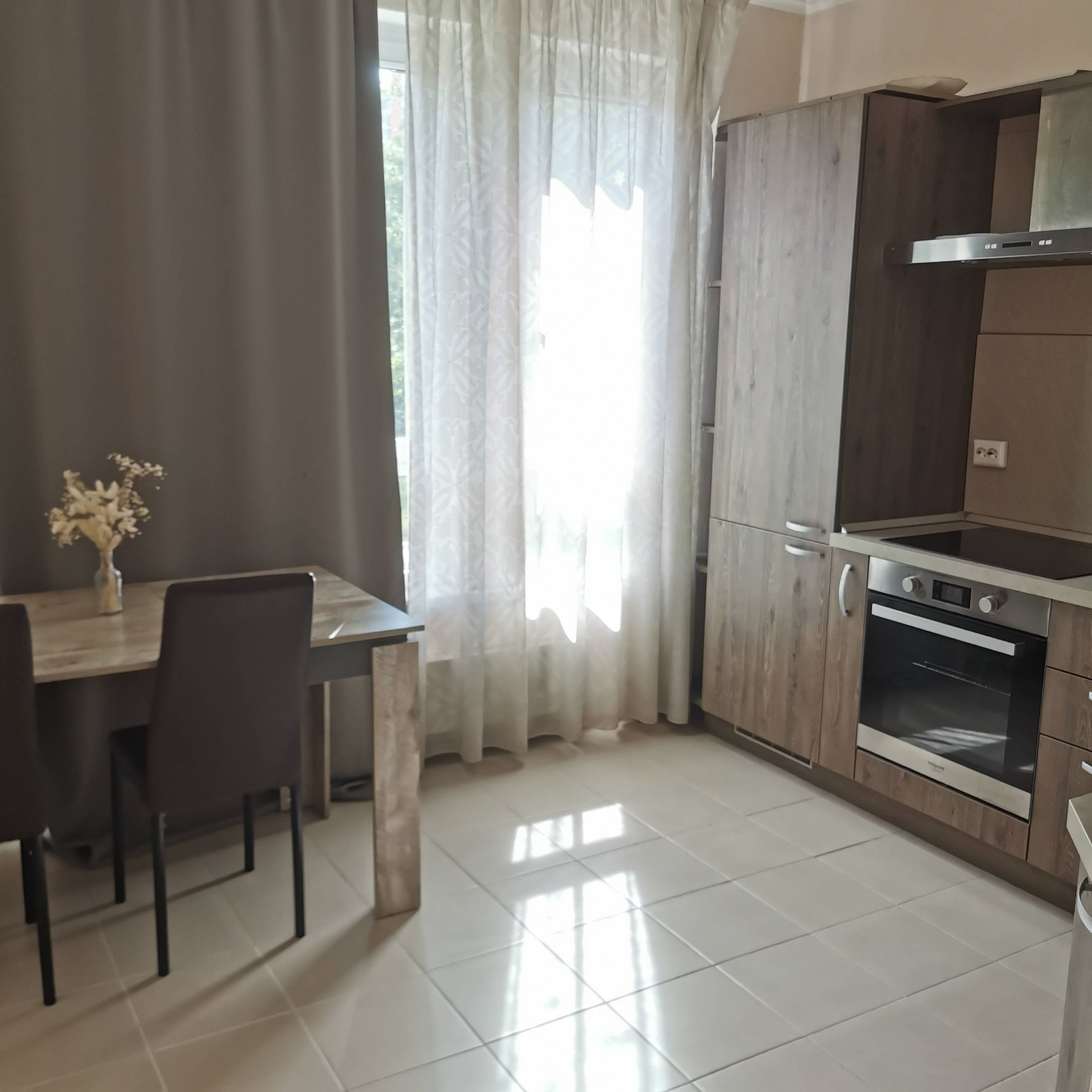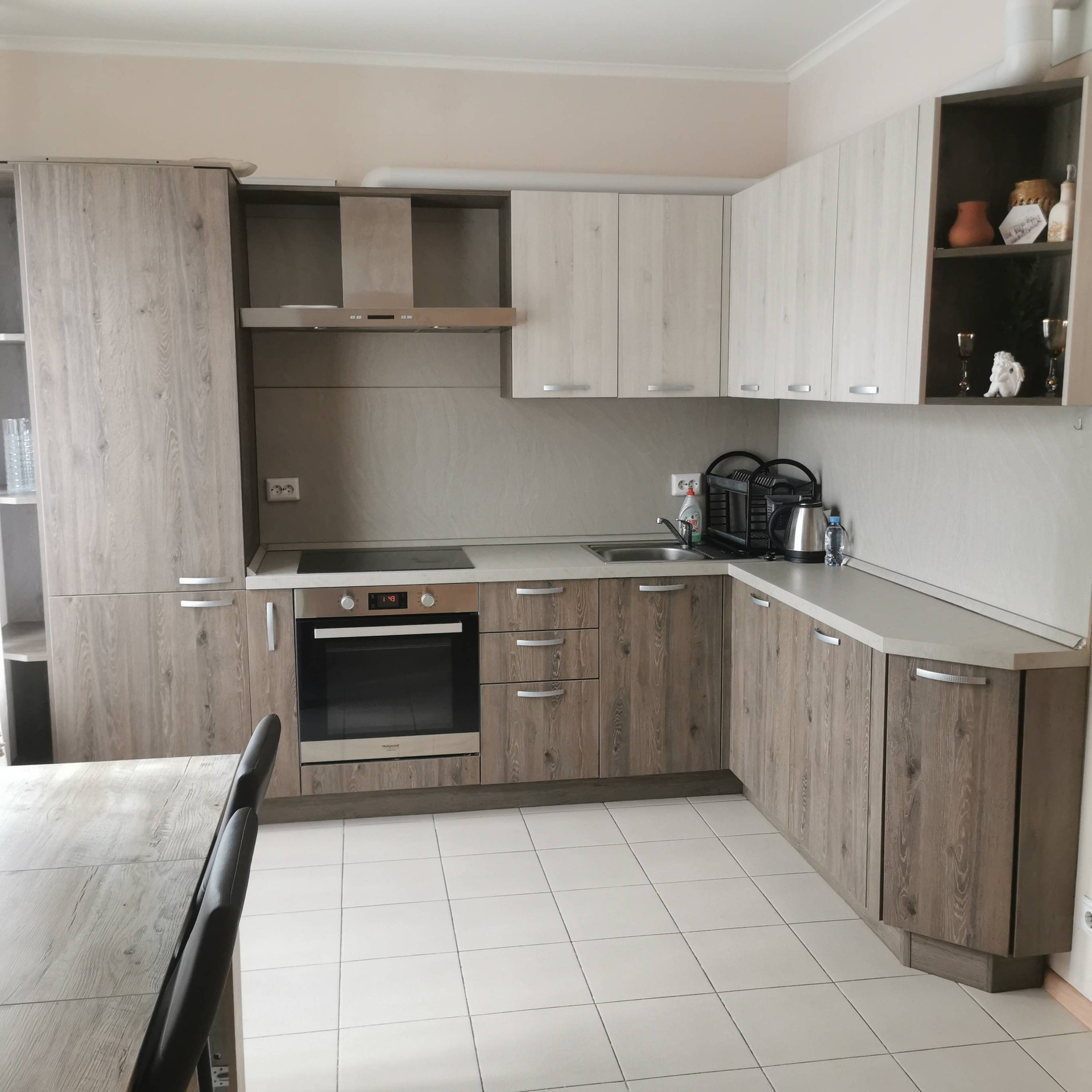 Продается квартира, новостройка, готово к проживанию, вся техника в наличии (стиральная машина, кондиционер, духовая печь Аристон, индукционная плита Аристон, вытяжка, холодильник двух камерный, телевизор), в прихожей шкаф для верхней одежды, в комнате большой шкаф для вещей, кровать двухспальная, стол обеденный, стулья, предметы интерьера.
