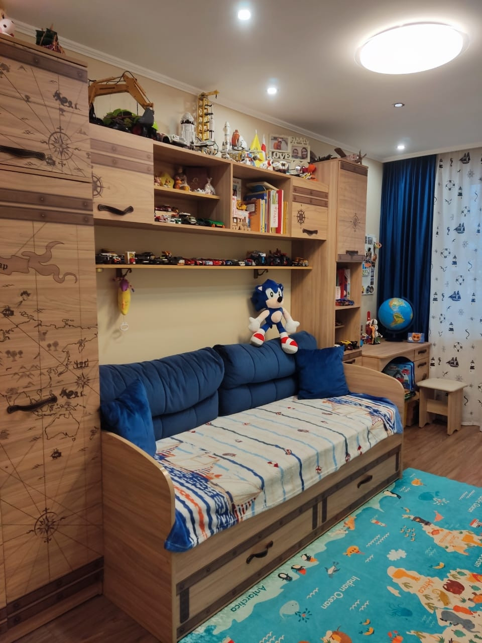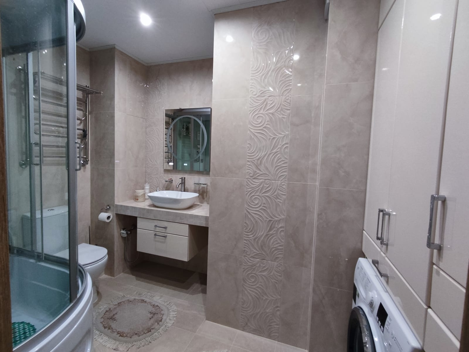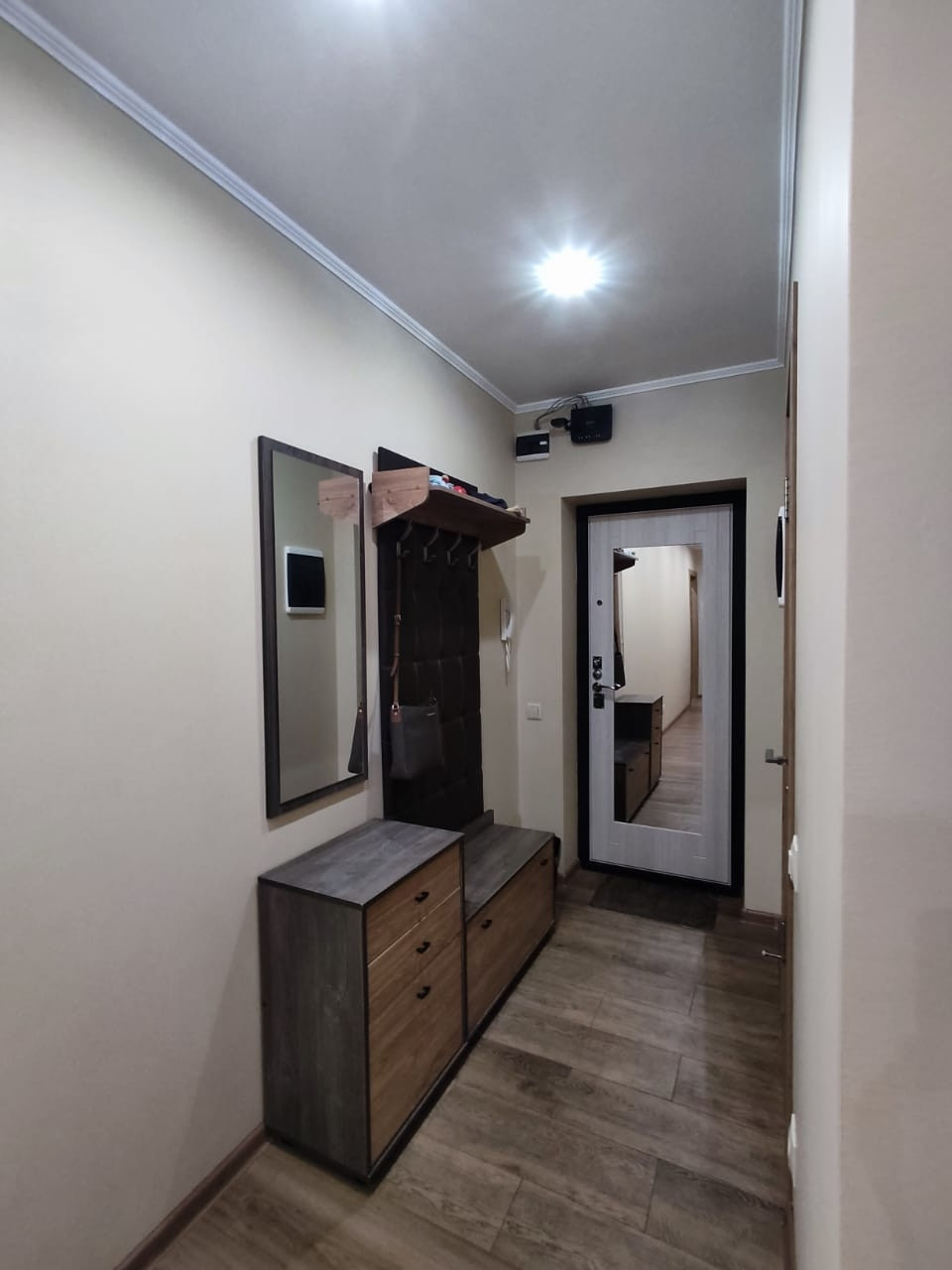 Квартира ухоженная с новым ремонтом, в ней имеются 3 комнаты: большой зал с 4-хметровым удобным раскладным диваном, каждая секция которого оборудована ящиками; светлая уютная спальня с большой кроватью, угловым шкафом,  прикроватной тумбой и тумбой для ТВ; детская комната, в которой окно и балконная дверь имеют защитные замки, чтобы ребёнок сам не открыл, все розетки также с защитой. Застеклённая окнами rehau лоджия имеет пол с подогревом, при желании можно включать в зимнее время года, имеется удобная вешалка для сушки белья, в лоджии была сделана гидроизоляция. Кладовая оборудована полками, гардеробом и антресолями. Совмещённый просторный санузел (при ремонте был поменян стояк и произведена гидроизоляция); в ванной комнате находится канадская большая душевая кабина с глубоким поддоном 130 на 100 см, в котором можно принимать ванну. Также в ванной комнате располагается большой шкаф с полками, бельевой корзиной, отделом для стиральной машинки и отсеком для химсредств. Кухня со встроенной техникой, нишей для холодильника, мягким кухонным гарнитуром и столом.