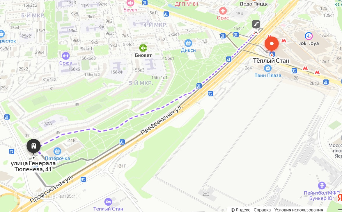 Район с хорошо развитой инфраструктурой. Большое количество магазинов, кафе и организаций сферы услуг, школы, детские сады, фитнес клуб, салоны красоты, аптеки, детская и взрослая поликлиника, ближе к метро торгово-развлекательные центры «Принц плаза», «Спектр» и «Твин плаза», фермерский Тёплостановский рынок, а непосредственно около дома магазин «Пятерочка», почта и кафе.