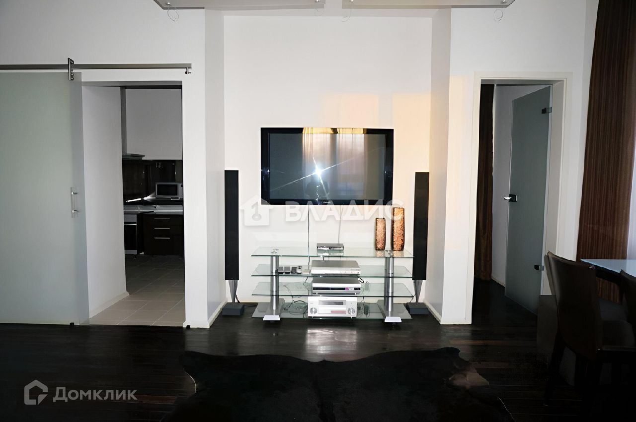 Общая площадь квартиры составляет 111,5 квадратных метров (без учета лоджий). С учетом лоджий общая площадь составляет 123,3 квадратных метра. Планировка узаконена. В квартире три изолированные спальни, студия-кухня, гардеробная, два санузла и две лоджии.