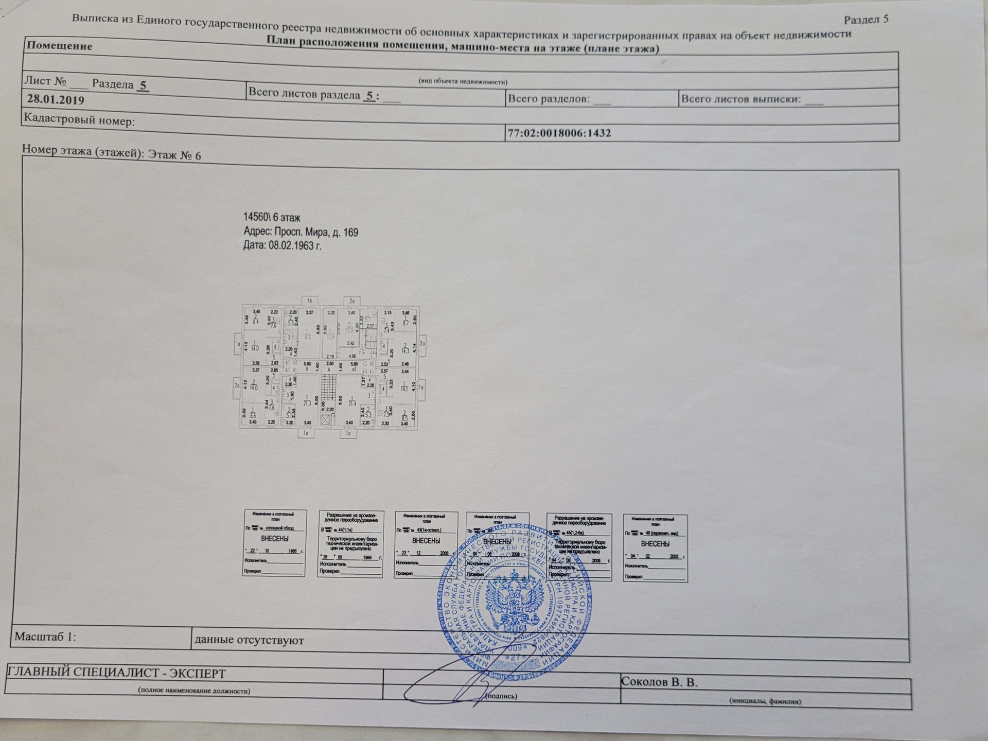 1-комнатная квартира, 32 м2, этаж 6 / 9, на продажу в Москве, проспект Мира, 169