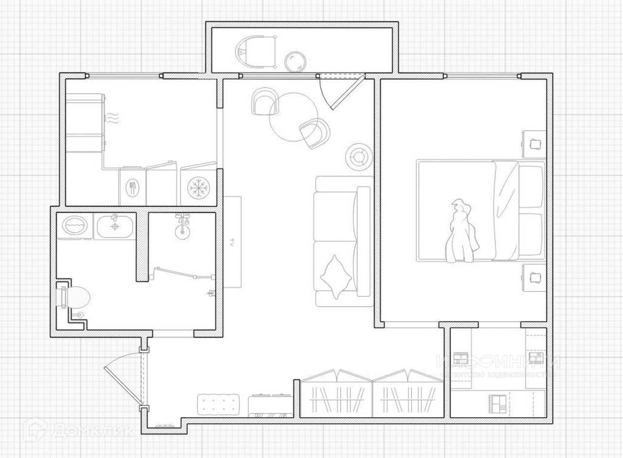 Тщательно продуманный функционал и эргономика пространства. Кухня-гостиная, вместительный с/у, просторная спальная комната и отдельная гардеробная.
