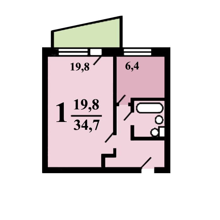 Общая площадь 34.7 м2